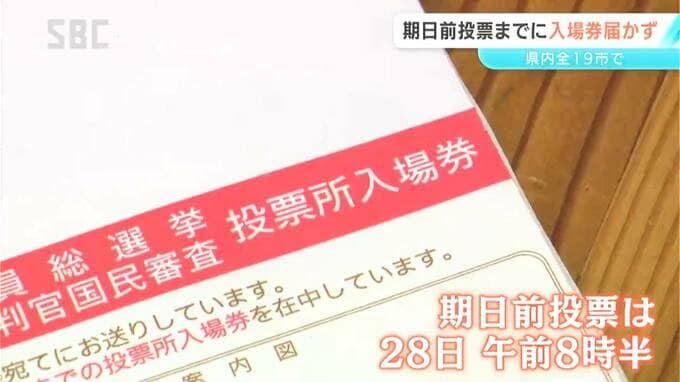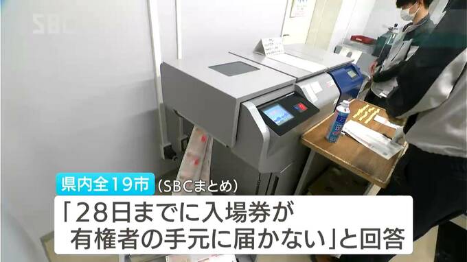 SBCが26日、県内19の市の選挙管理委員会に確認したところ、すべての市で「28日までに入場券が有権者の手元に届かない」と回答がありました。