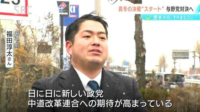 同じ24日の午後、前回は比例で復活当選した中道改革連合の福田淳太さんが雪が吹き付ける街頭に立ちました。