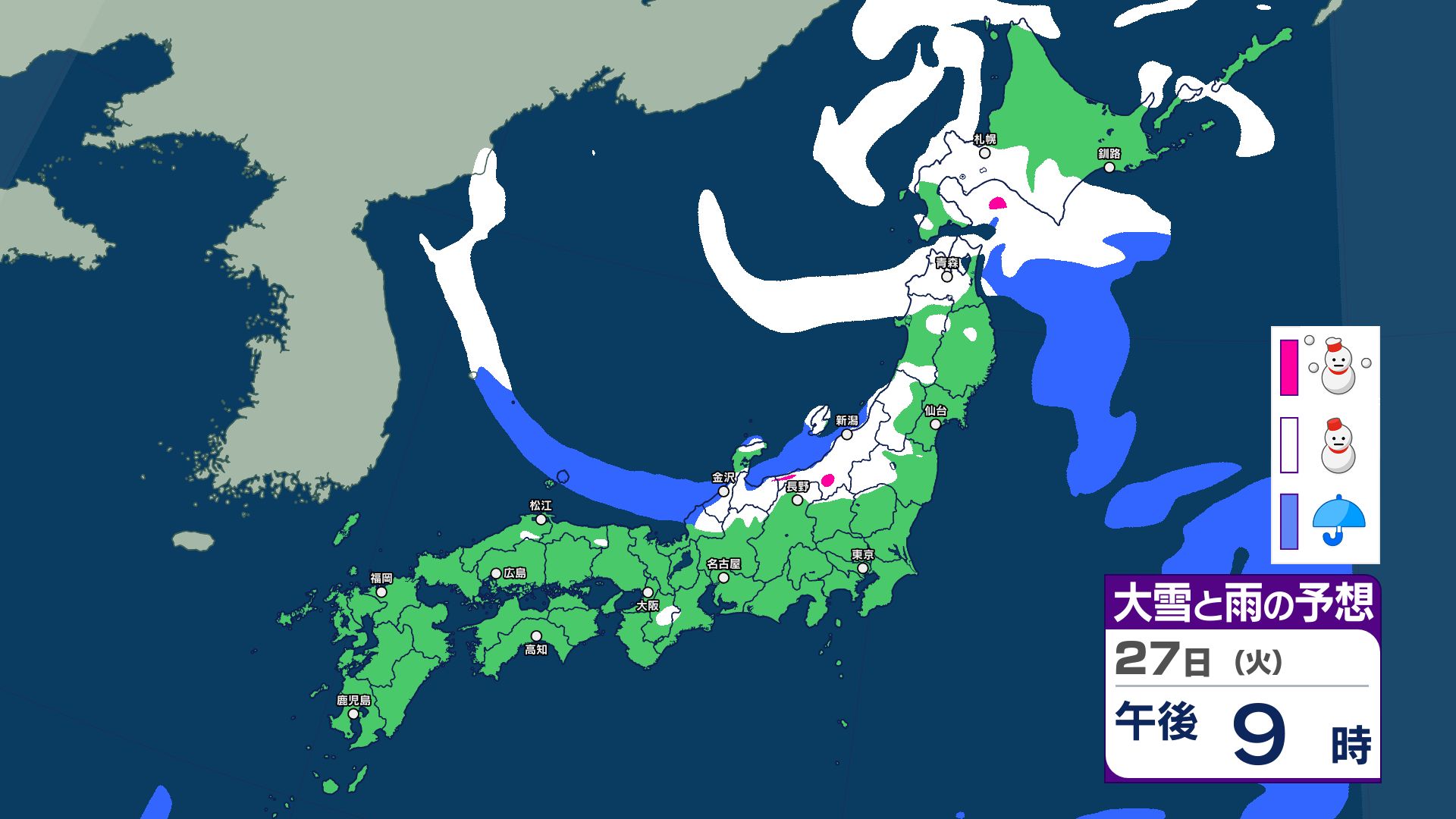 【大雪情報】29日~30日は北陸・近畿で大雪のおそれ 関東南部も雪の可能性【2月1日まで 雪のシミュレーション掲載】 2026年1月27日(火) 21:00 国内 【雪のシミュレーション掲載 2月1日まで】