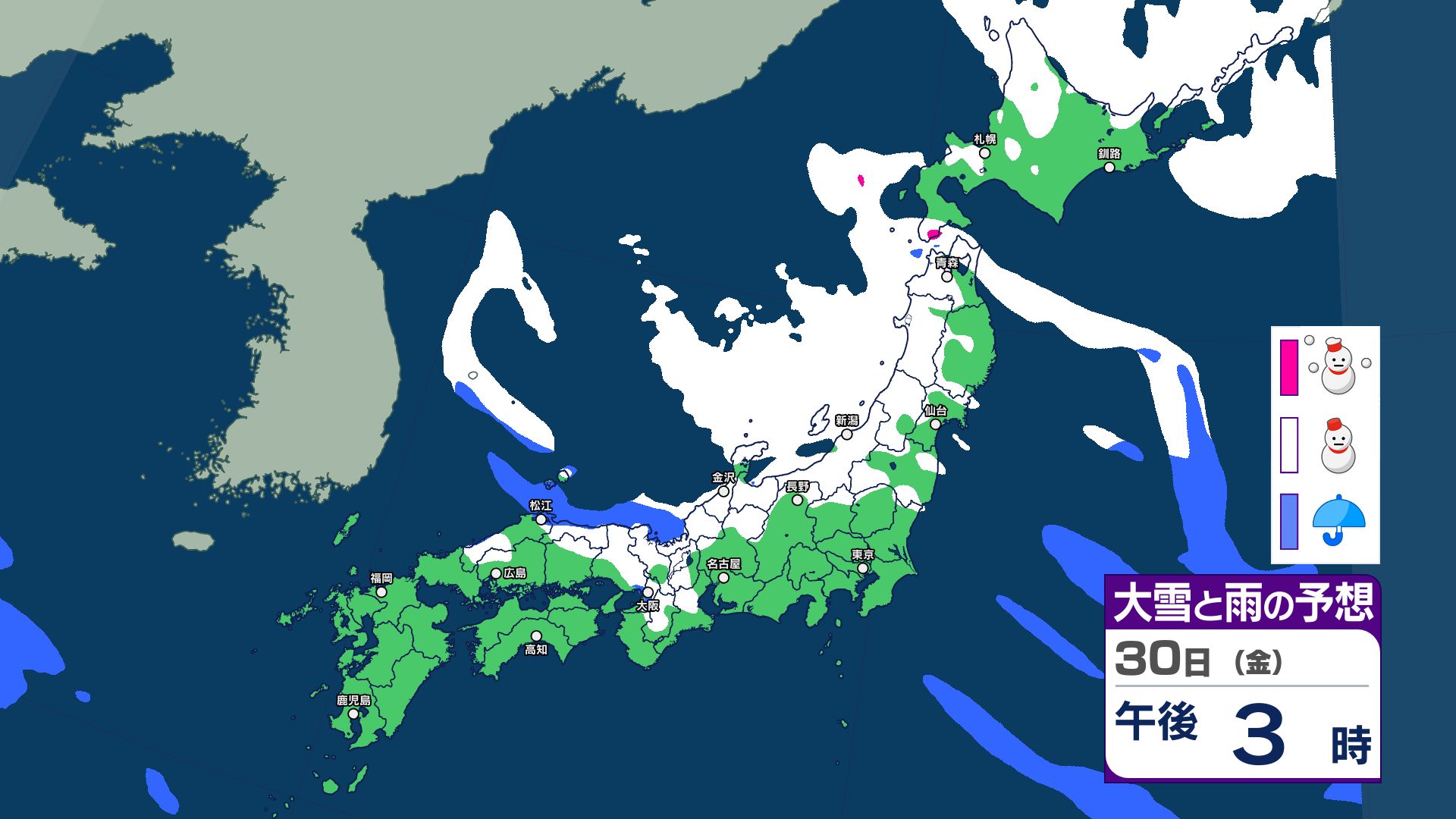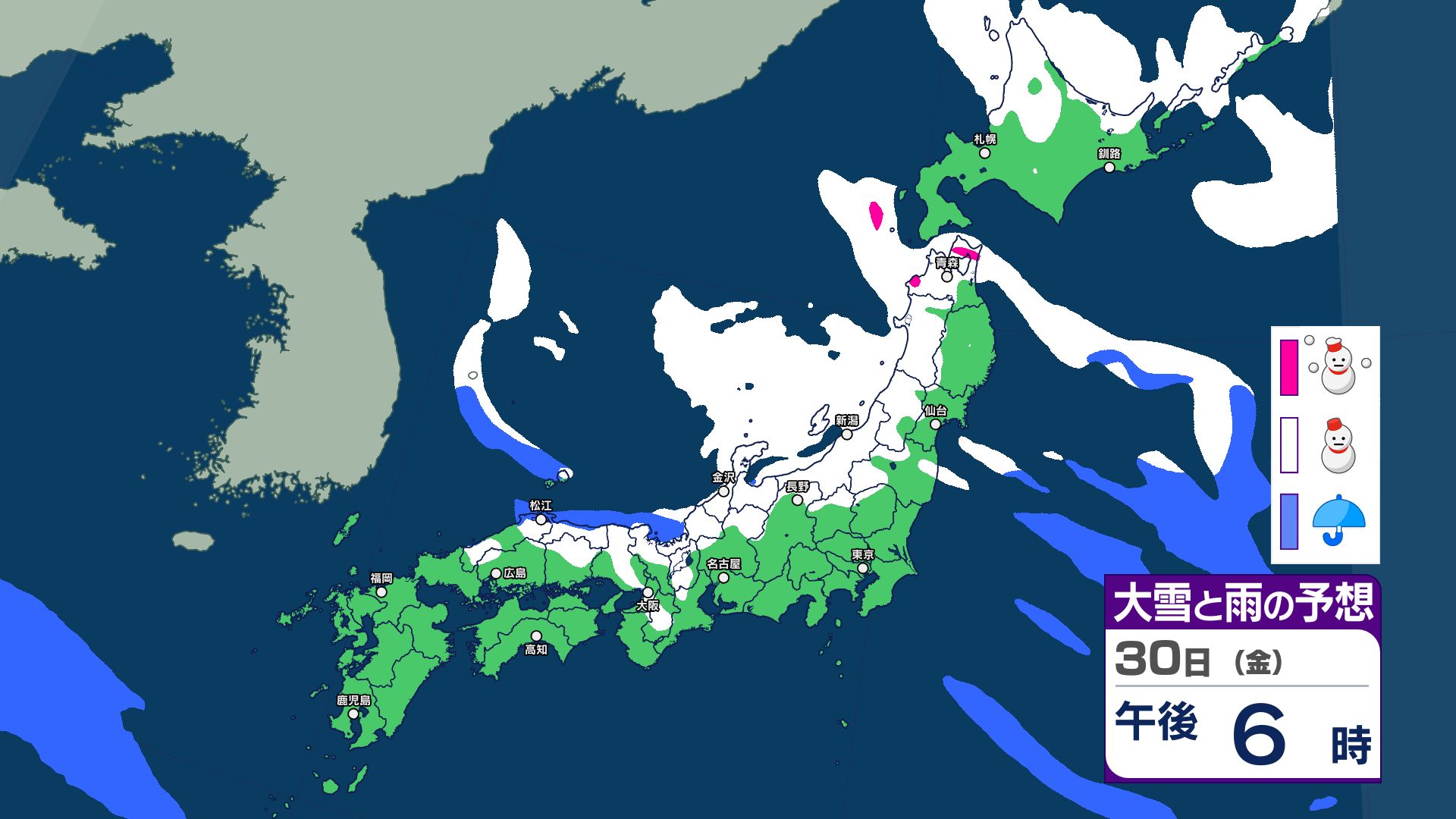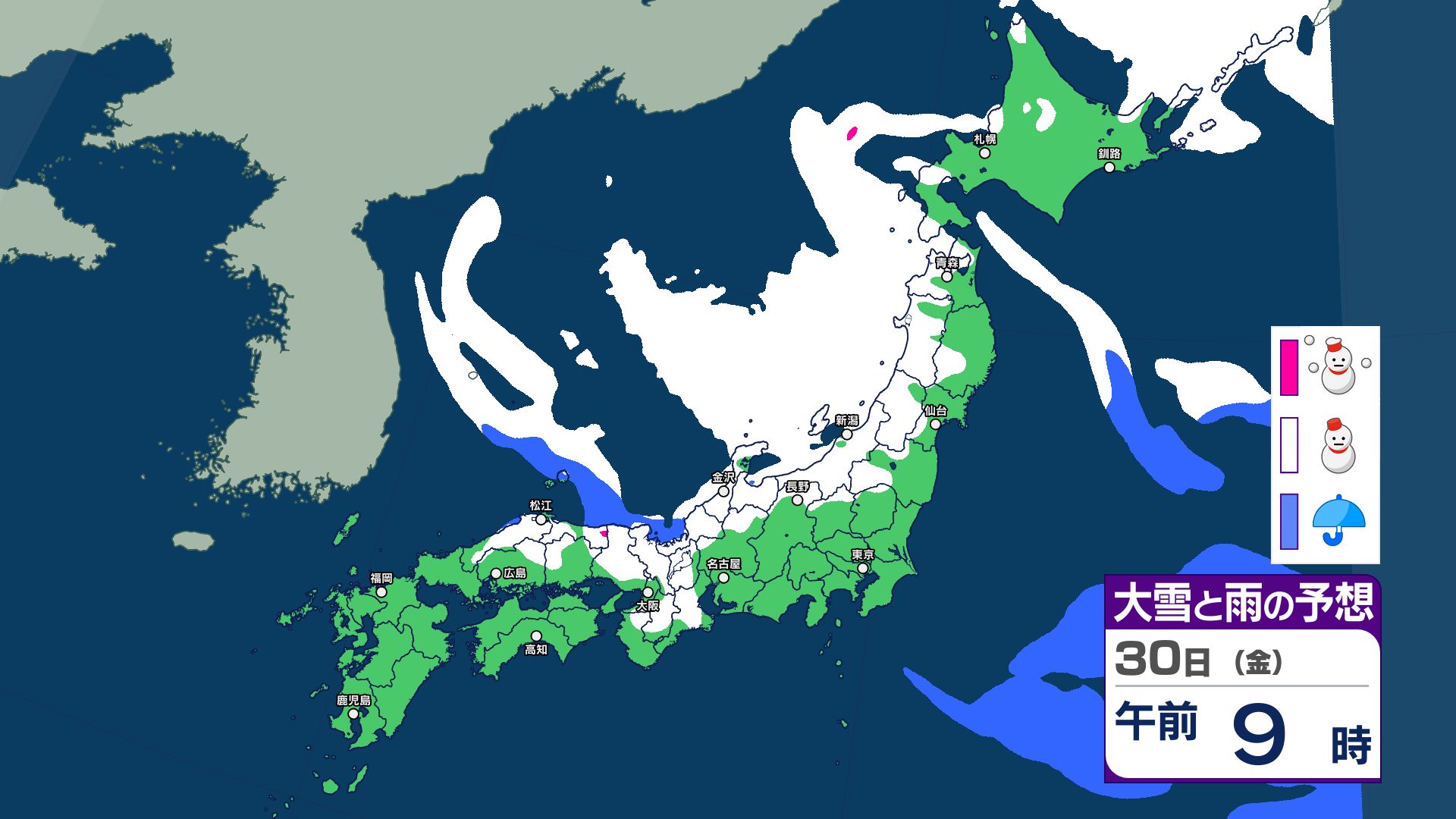 【関東でも、雪か】東北地方と東日本~西日本の日本海側を中心に大雪の見込み【雪のシミュレーション掲載】気象庁 29日~30日予想降雪量 北陸70センチ 東海40センチ 近畿50センチ(~午後6時・多い所)東日本~西日本の太平洋側で大雪になる所も 3時間前