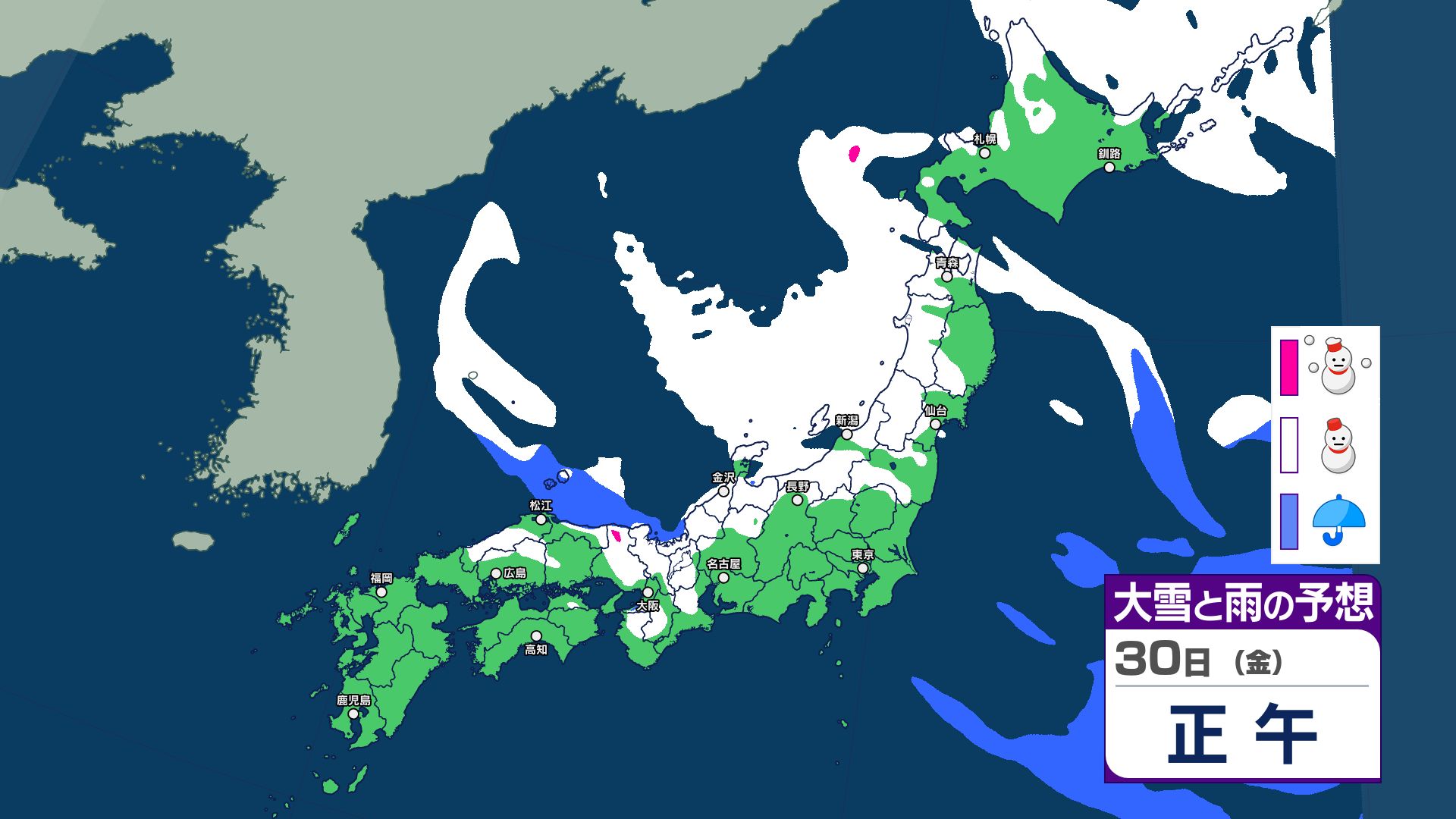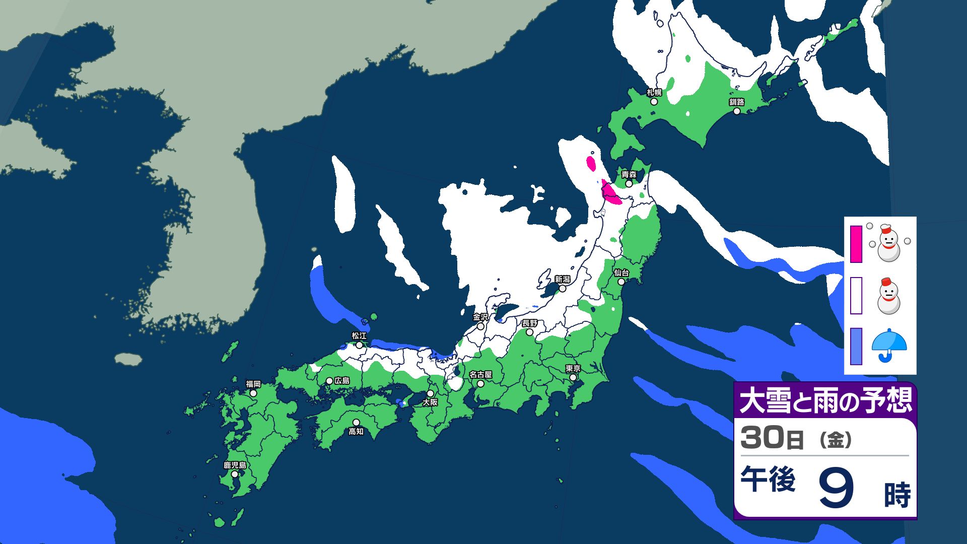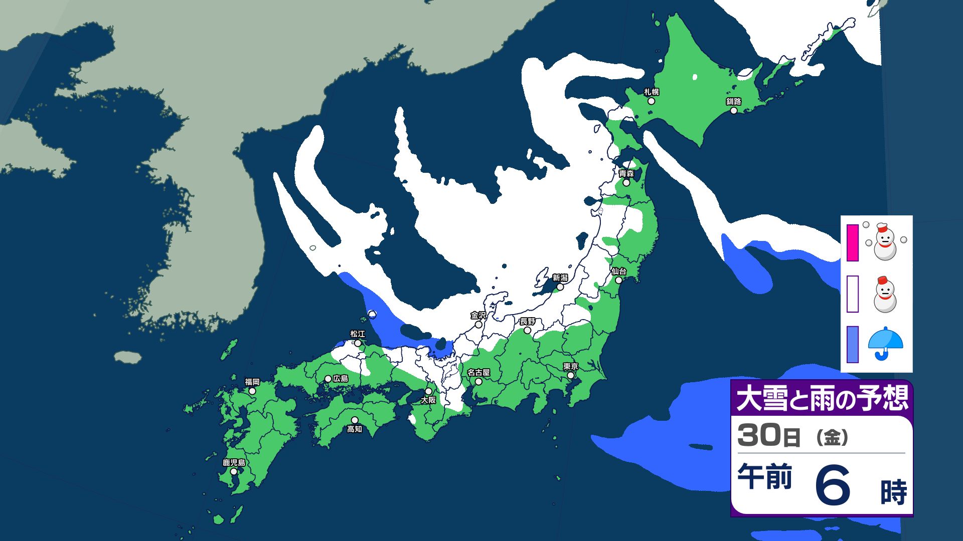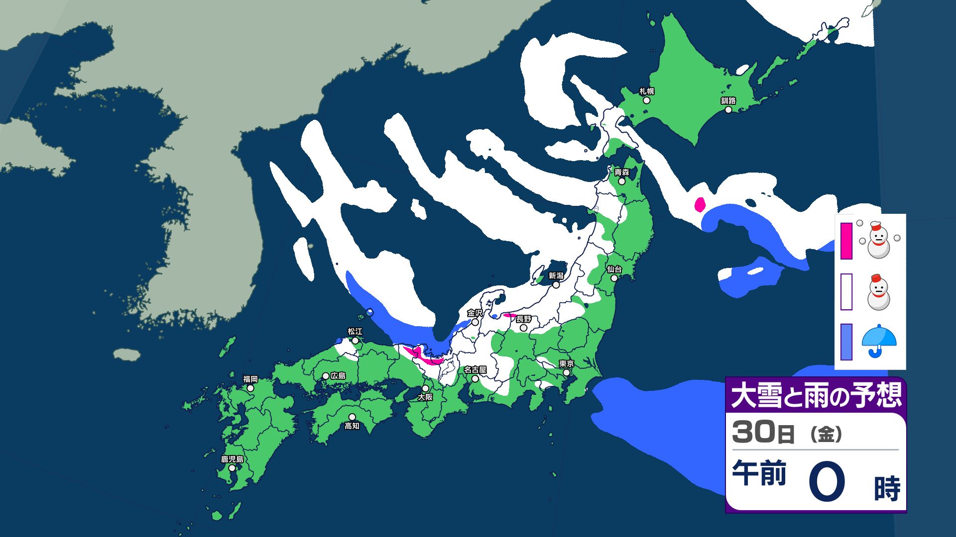 【関東でも、雪か】東北地方と東日本~西日本の日本海側を中心に大雪の見込み【雪のシミュレーション掲載】気象庁 29日~30日予想降雪量 北陸70センチ 東海40センチ 近畿50センチ(~午後6時・多い所)東日本~西日本の太平洋側で大雪になる所も 3時間前