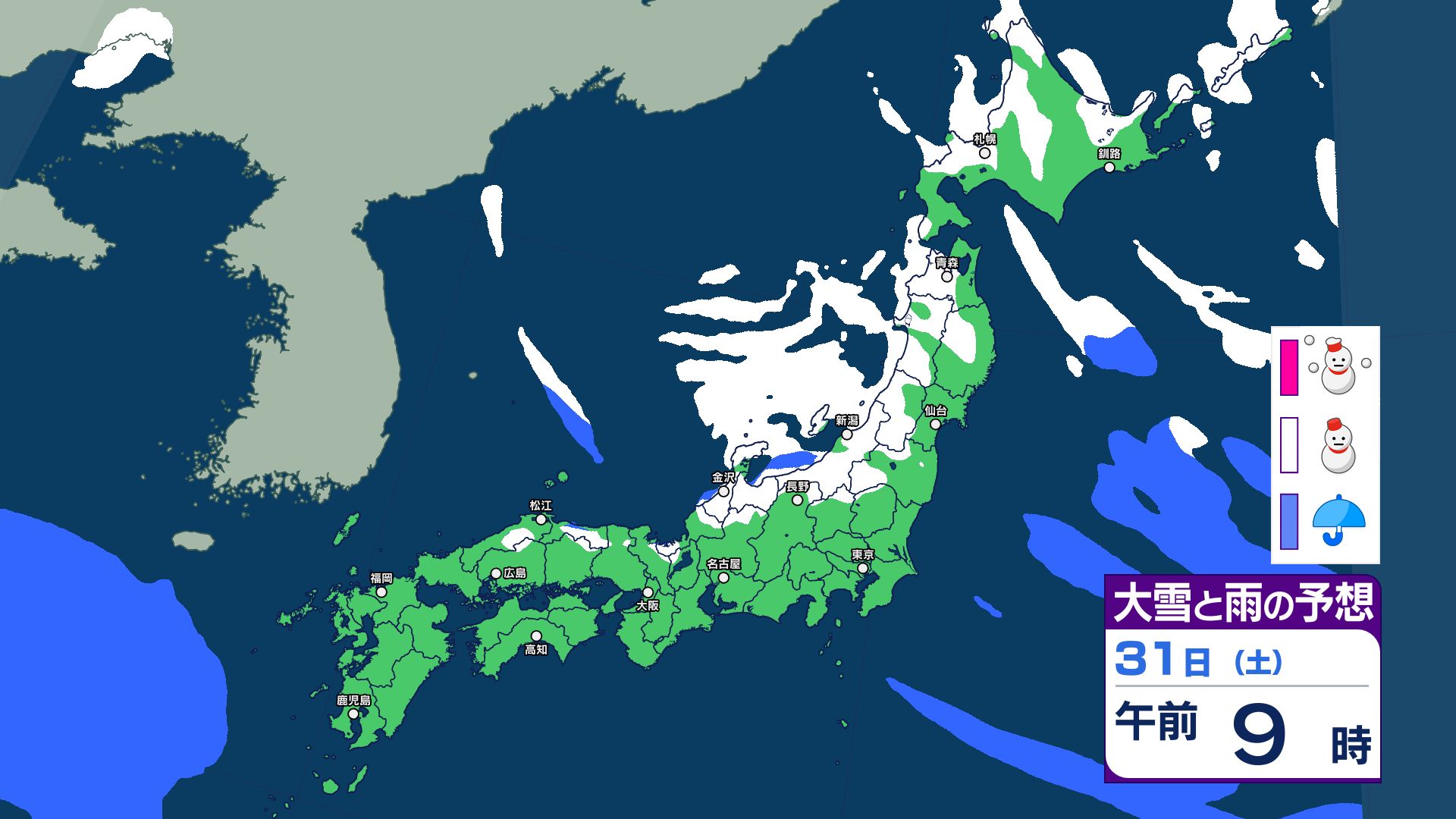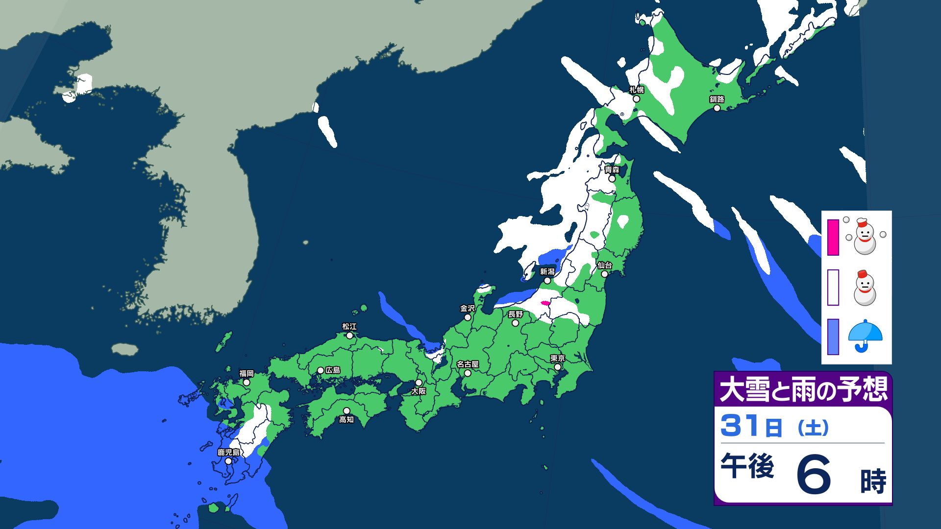 1日(日)の雪のシミュレーション