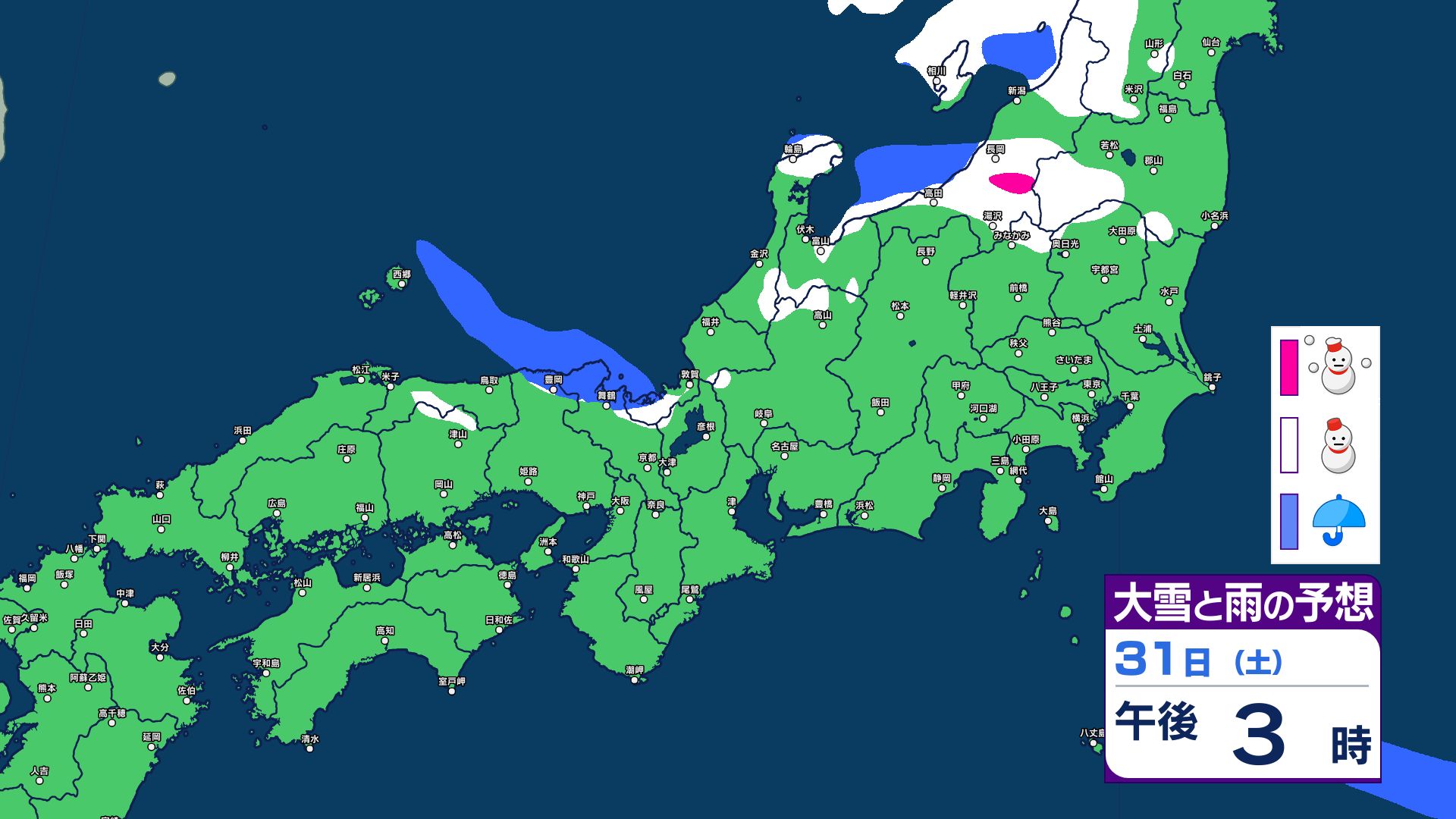 【大雪情報】東北地方と東日本~西日本 日本海側を中心に大雪のおそれ【雪のシミュレーション画像】気象庁(29日発表) 東北地方50センチ 北陸地方70センチ 東海地方40センチ 近畿地方60センチ(~30日午前6時・多い所) 2026年1月29日(木) 10:38 国内