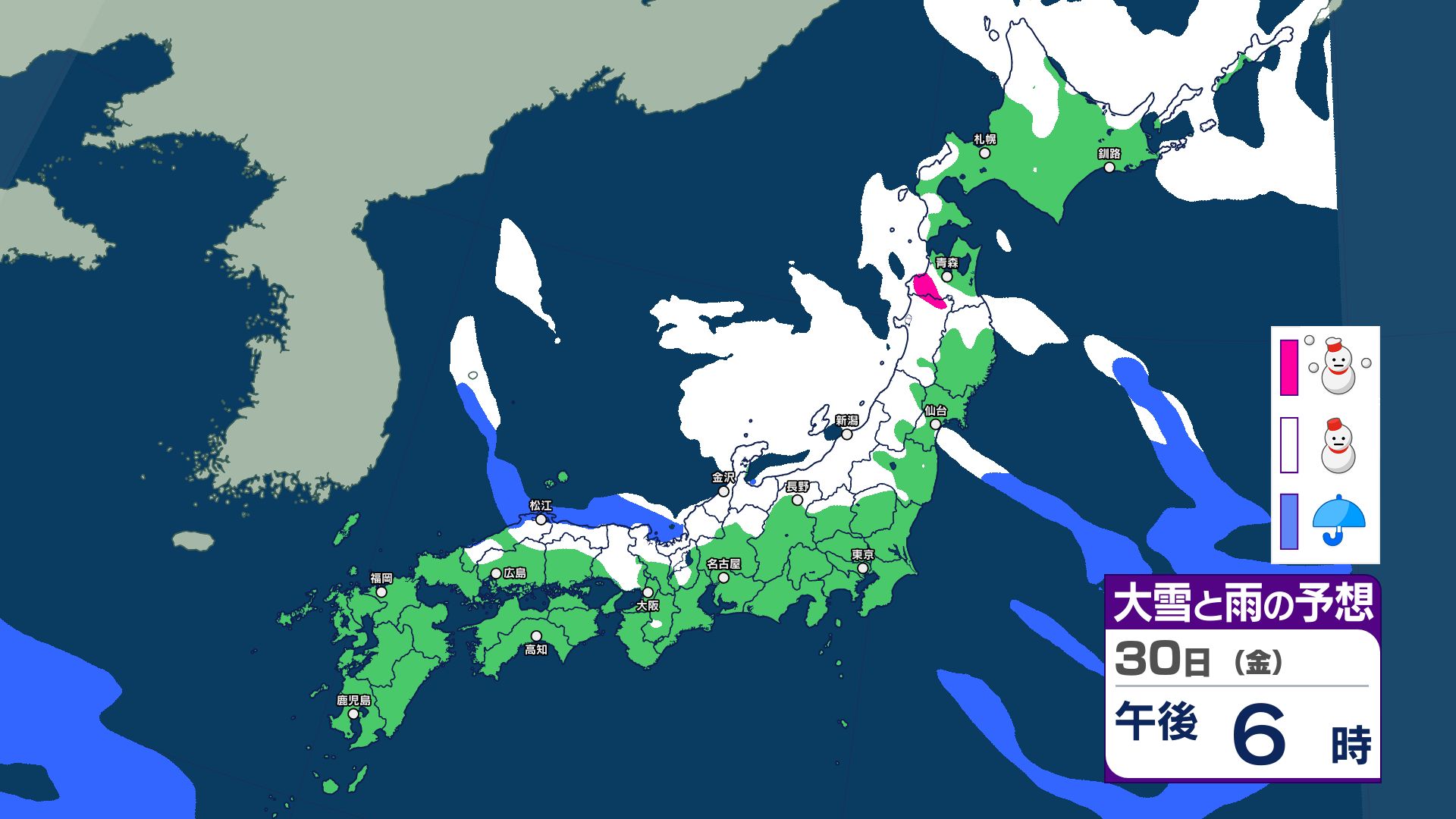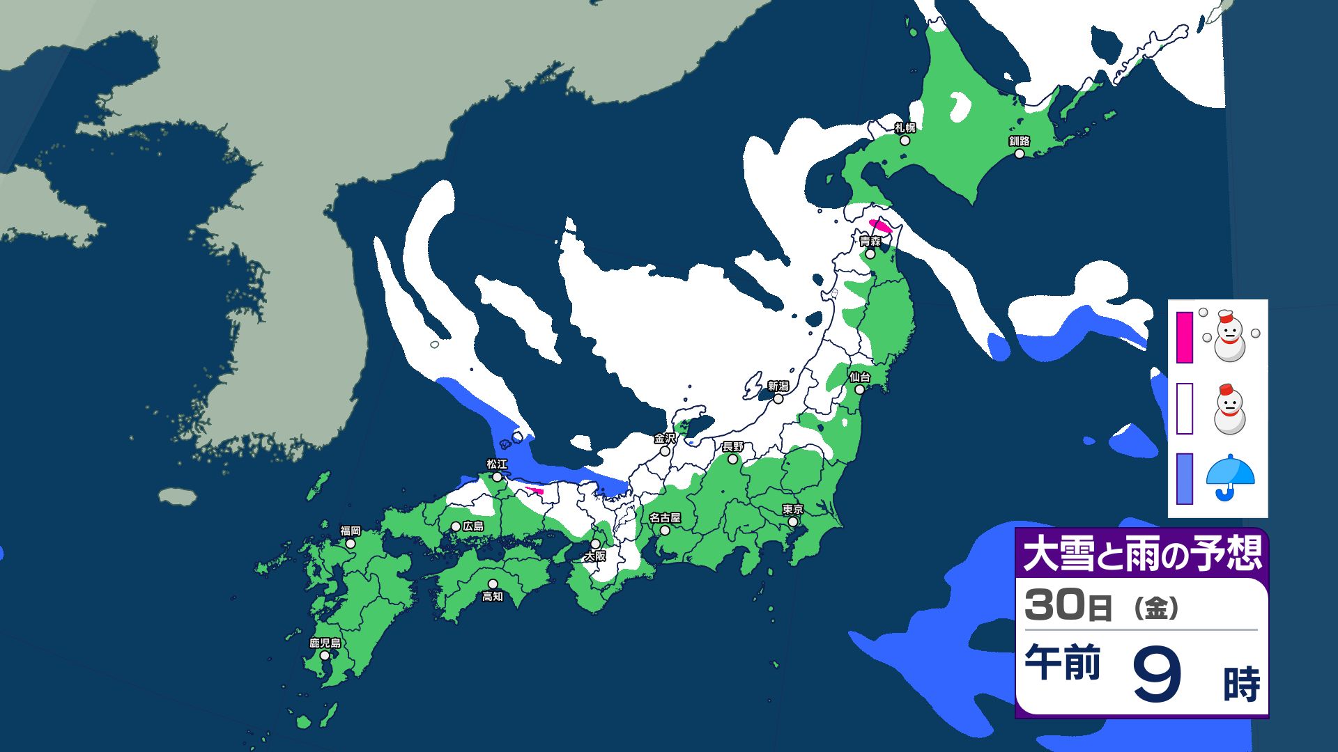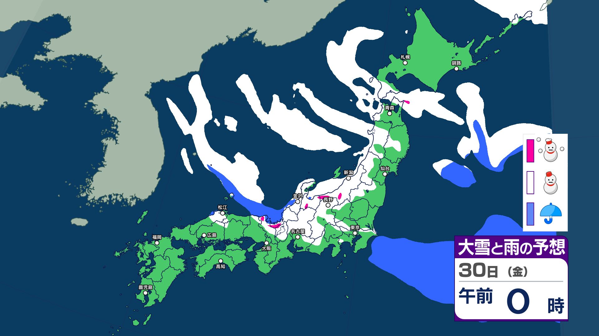 【大雪情報】東北地方と東日本~西日本の日本海側を中心に大雪のおそれ【雪のシミュレーション画像掲載】気象庁 北陸70センチ 東北・近畿50センチ 東海40センチ(~30日午後6時・多い所) | SBC NEWS | 長野のニュース | SBC信越放送