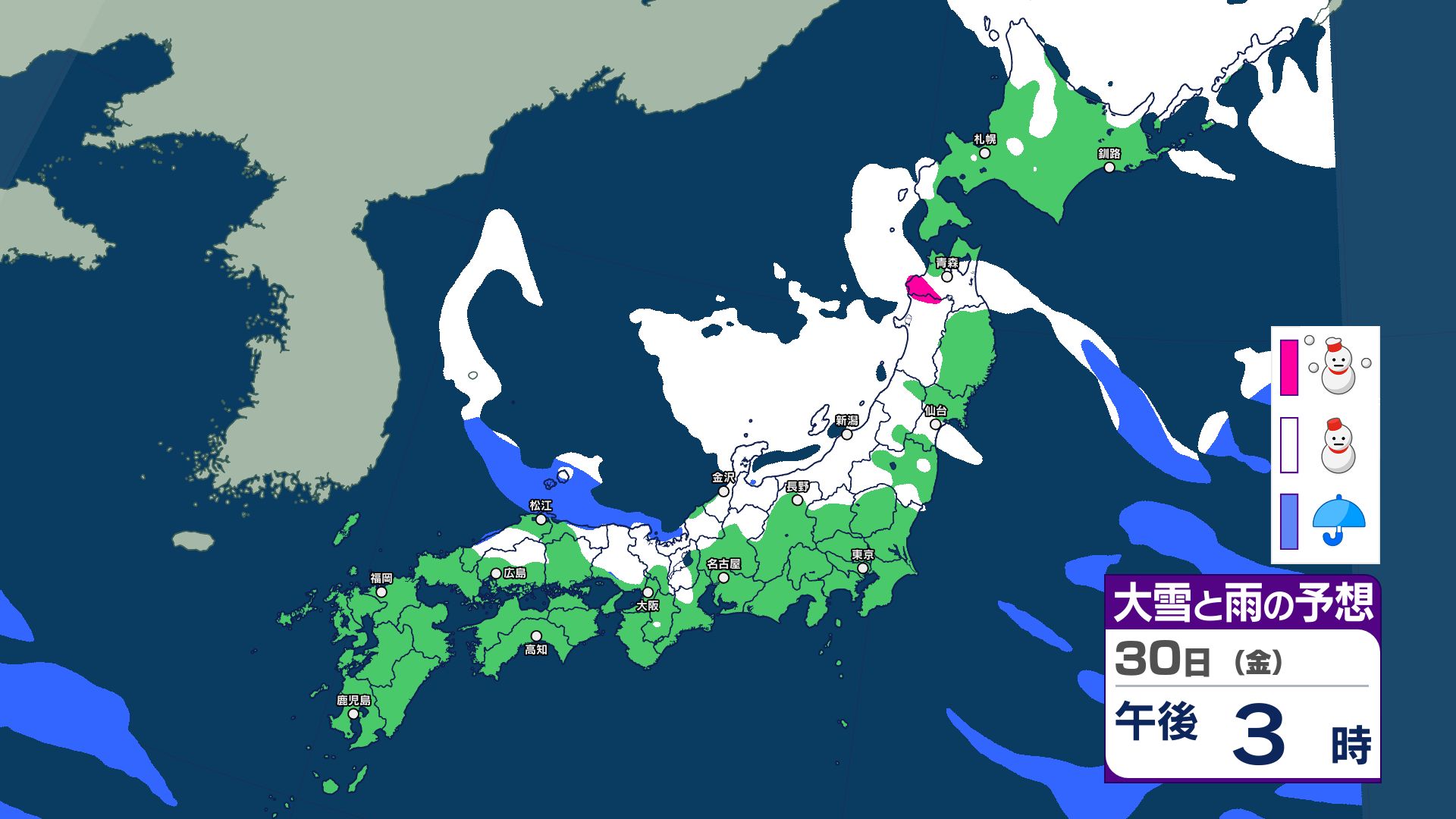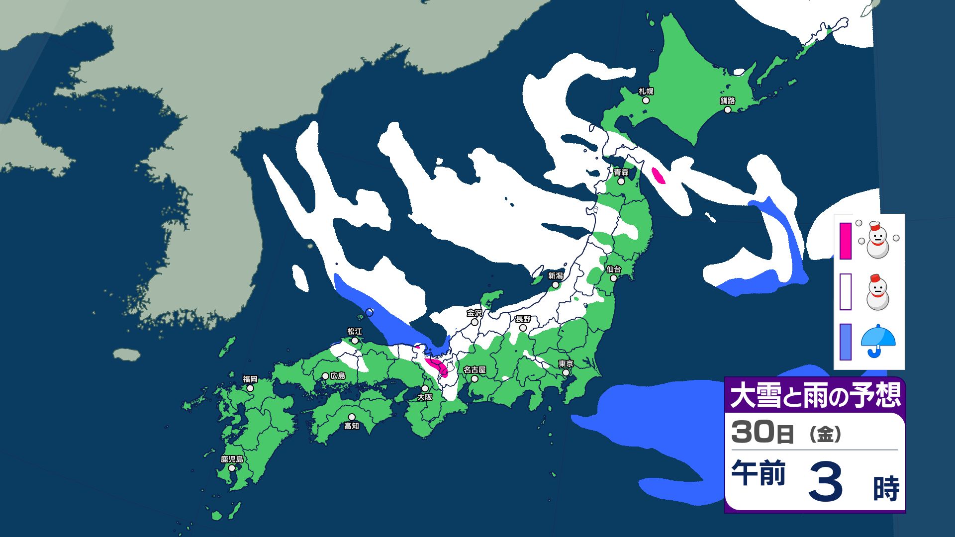 3. 【大雪情報】東北地方と東日本~西日本の日本海側を中心に大雪のおそれ【雪のシミュレーション画像掲載】気象庁 北陸70センチ 東北・近畿50センチ 東海40センチ(~30日午後6時・多い所)