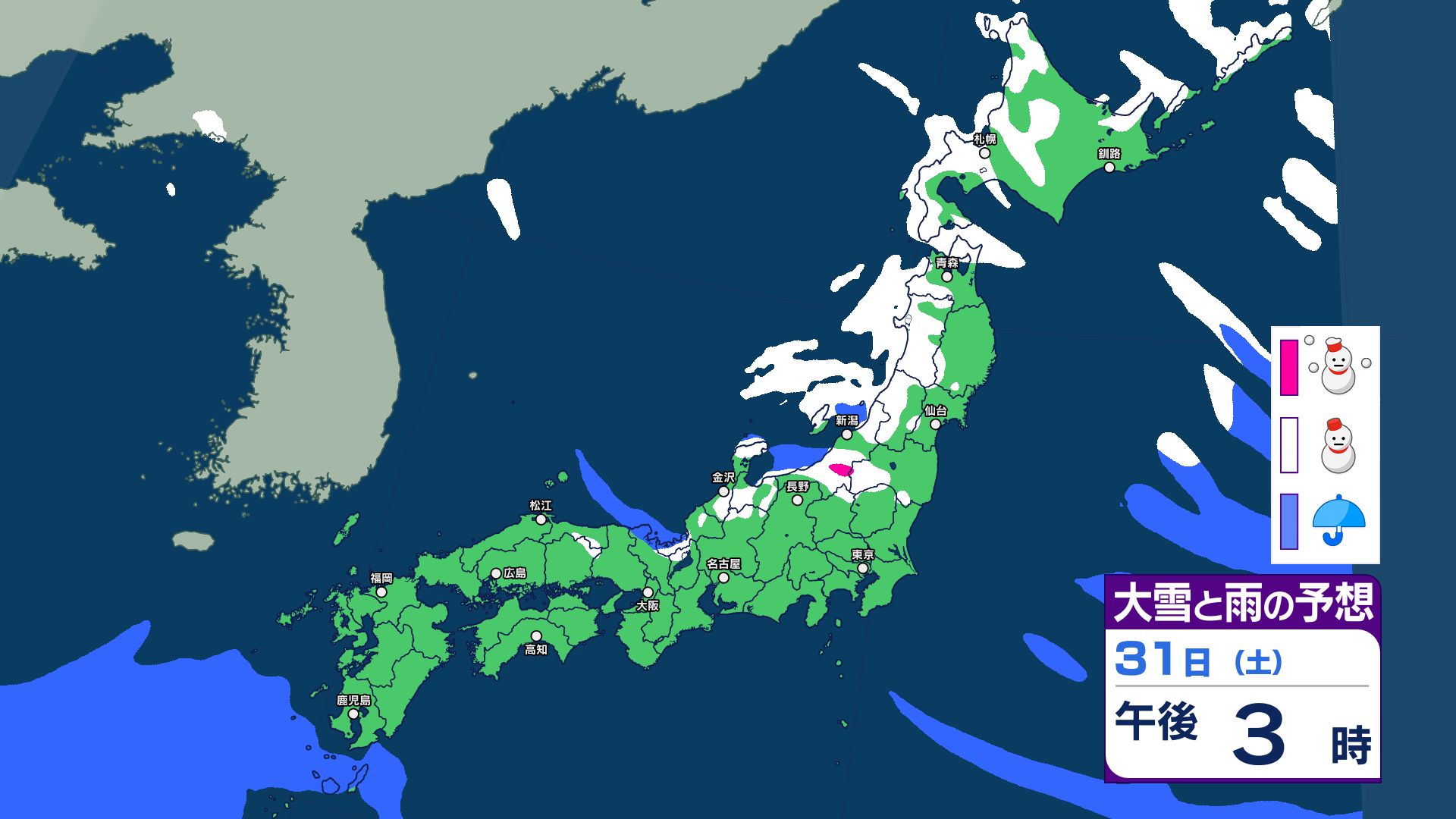3. 【大雪情報】東北地方と東日本~西日本の日本海側を中心に大雪のおそれ【雪のシミュレーション画像掲載】気象庁 北陸70センチ 東北・近畿50センチ 東海40センチ(~30日午後6時・多い所)