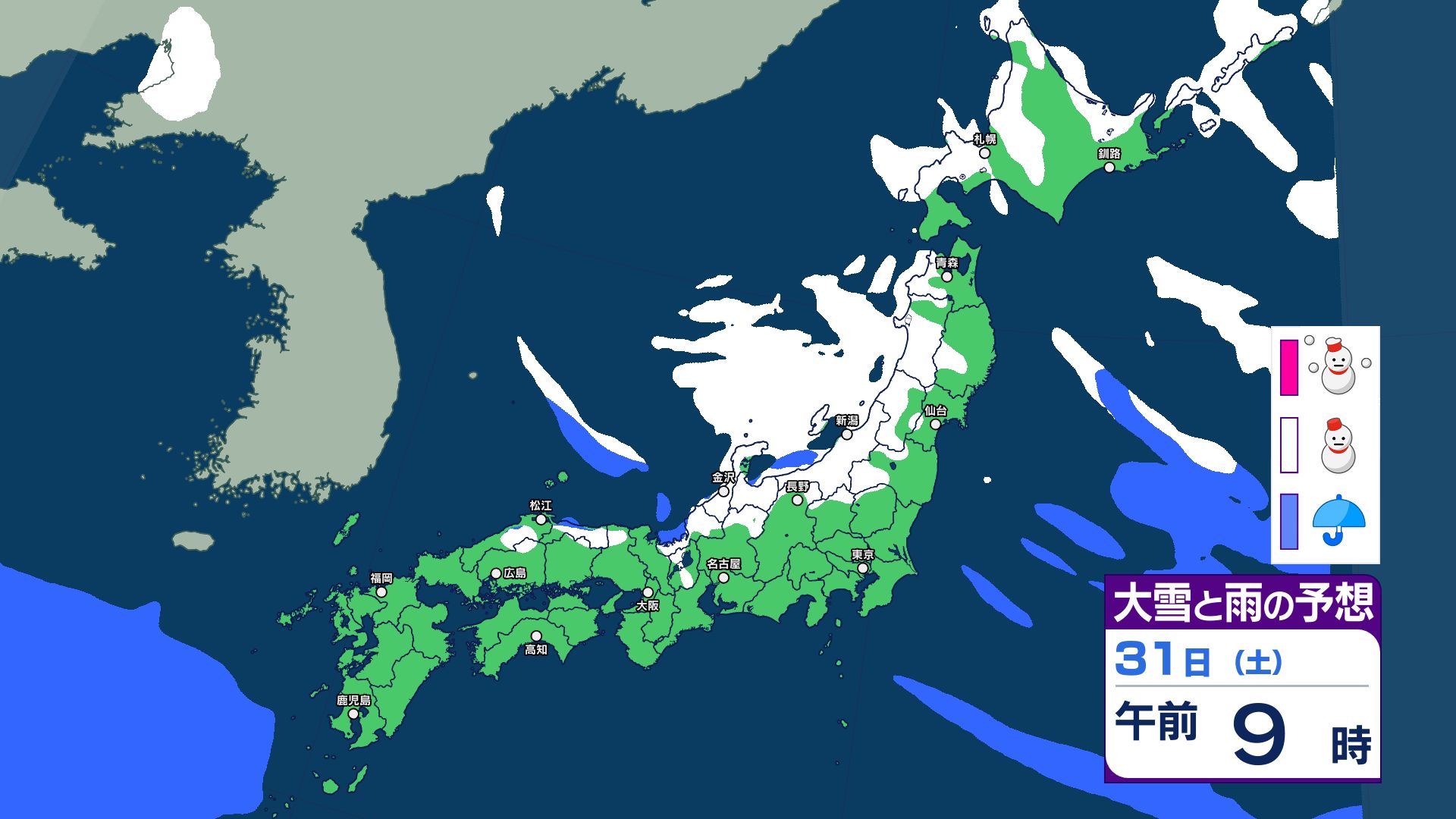 1日(日)の雪のシミュレーション