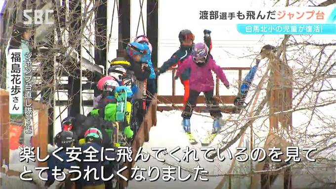 白馬村の小学校で、子どもたちが中心となり、老朽化したスキーのジャンプ台を復活させました。きょう(29日)は、富山県の小学校から訪れた児童たちと新たなジャンプ台で交流しました。