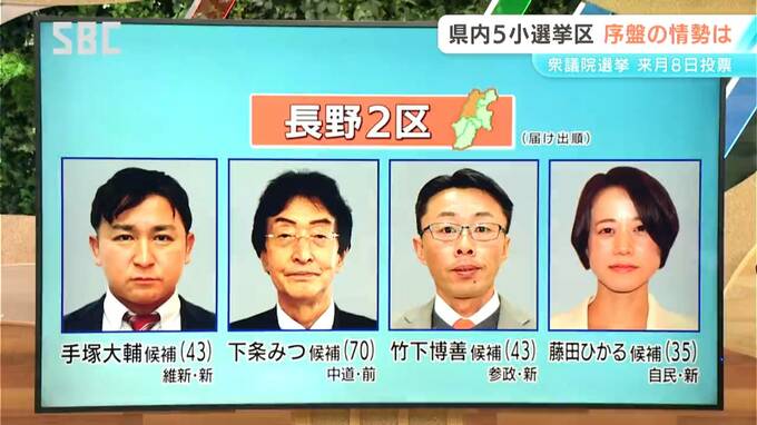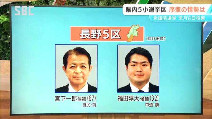 5区は届け出順に、自民党・前職の宮下一郎さん、中道改革連合・前職の福田淳太さんの一騎打ちです。