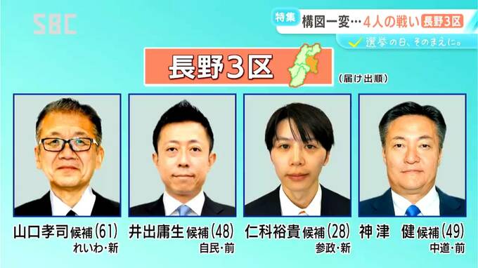 2月8日に投開票が行われる衆議院選。長野県内の5小選挙区の戦いについて、シリーズでお伝えします。1回目は、上田市、佐久市、千曲市などの長野3区です。
