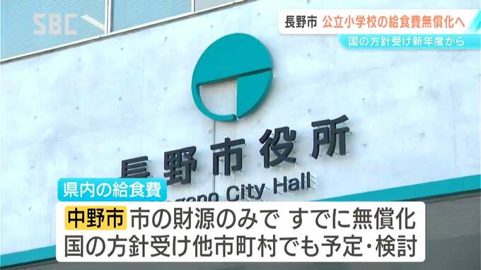 国が検討を進める小学校の給食費無償化をめぐり、長野市は4月から公立小学校の給食費を無償化する方針を明らかにしました。
