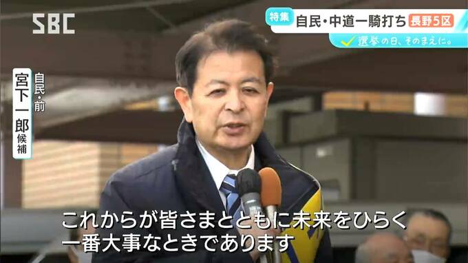 (演説)「どちらの候補が勝ってもおかしくない横一線と言われてます。今回本当に宮下一郎大苦戦、大接戦だから助けてあげてねとお声がけをいただけないでしょうか」