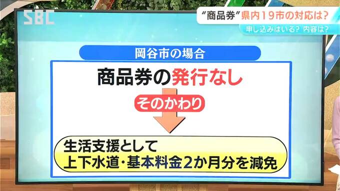 一方、岡谷市の場合はこちらです。国の交付金を使った商品券の発行はなく、生活支援として上下水道の基本料金2か月分を減免するということです。
