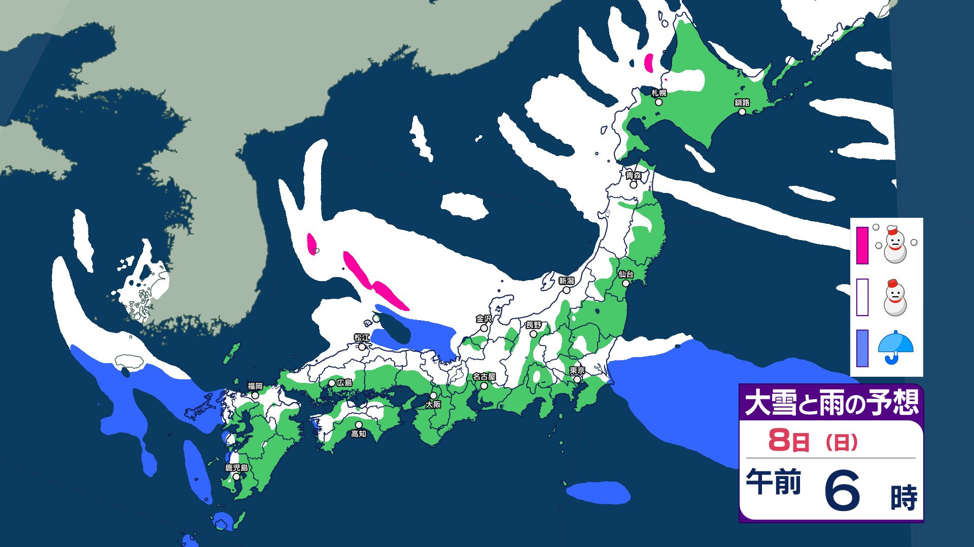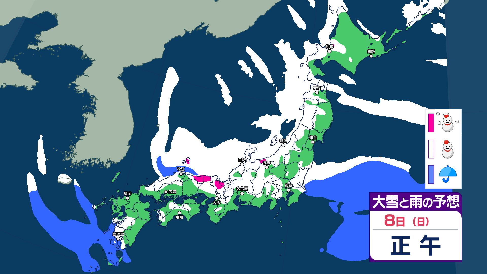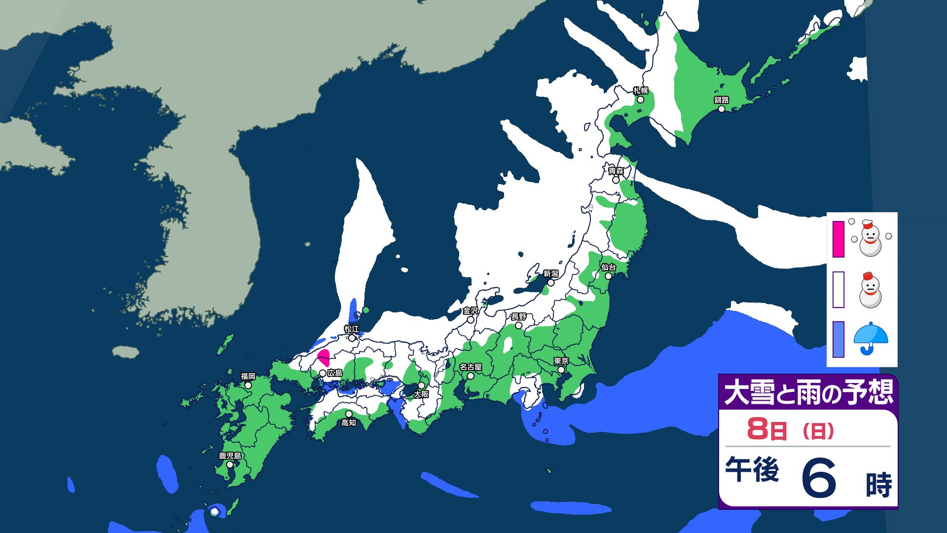 【大雪情報】8日(日)は日本海側中心に大雪の可能性 警報級の大雪のおそれ【2月9日まで 雪のシミュレーション更新】