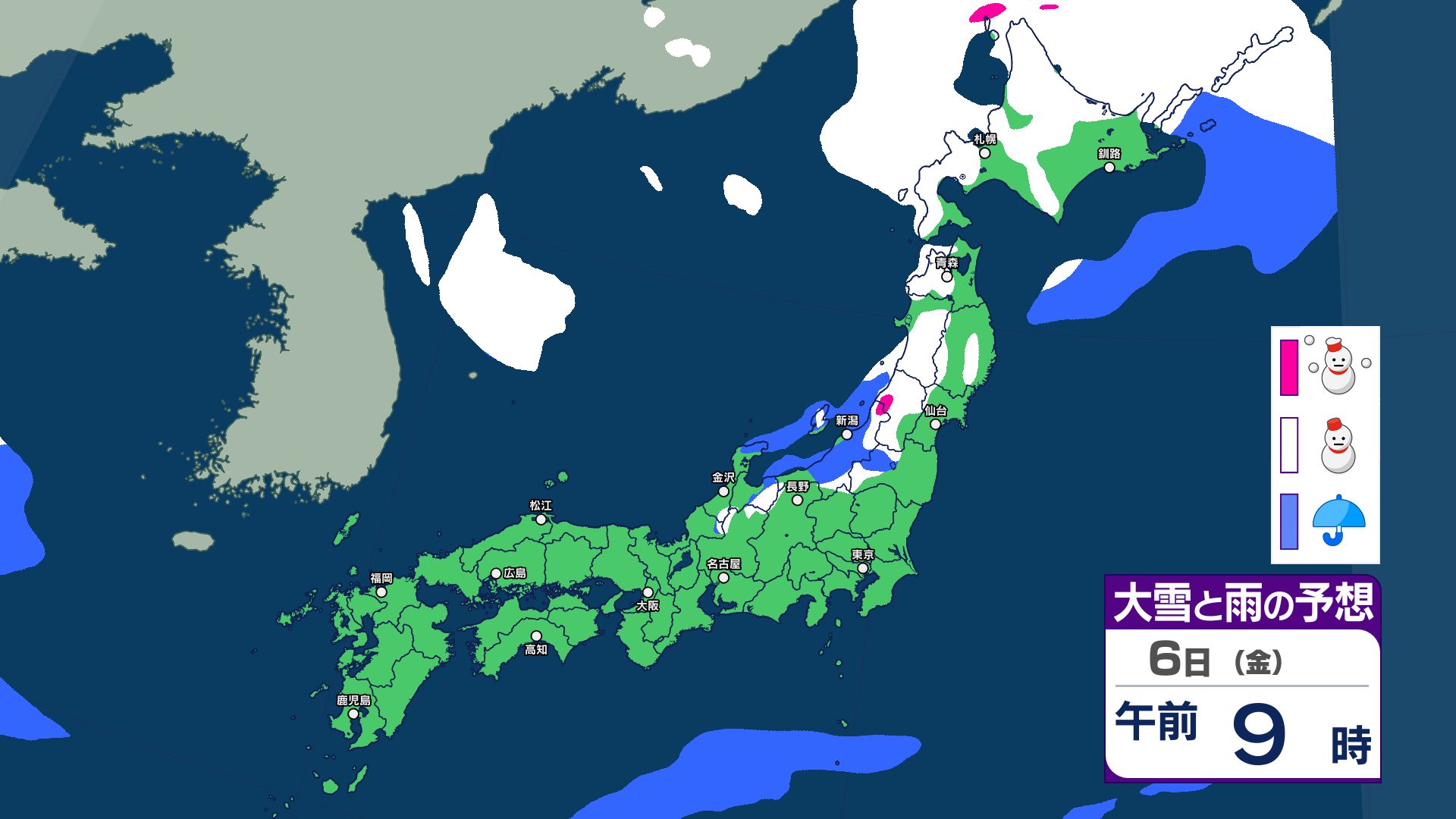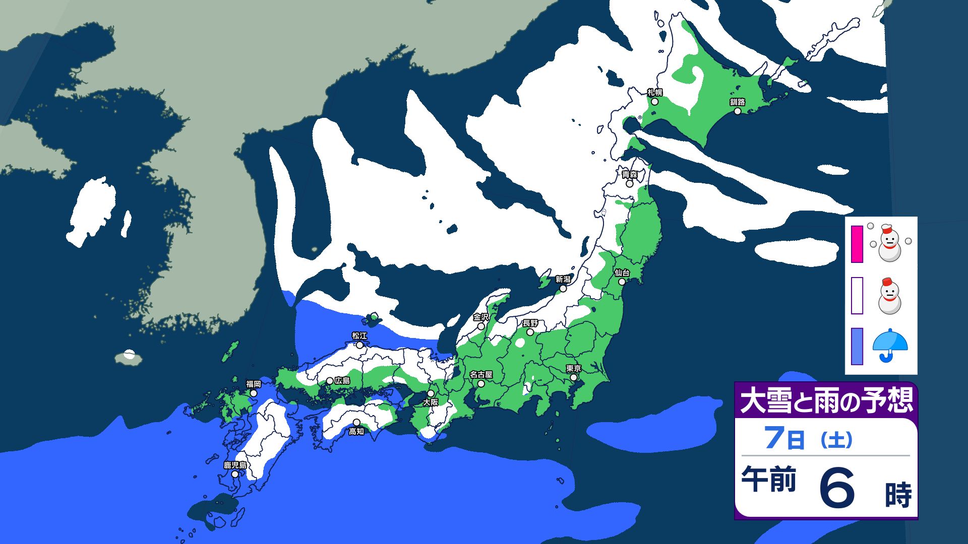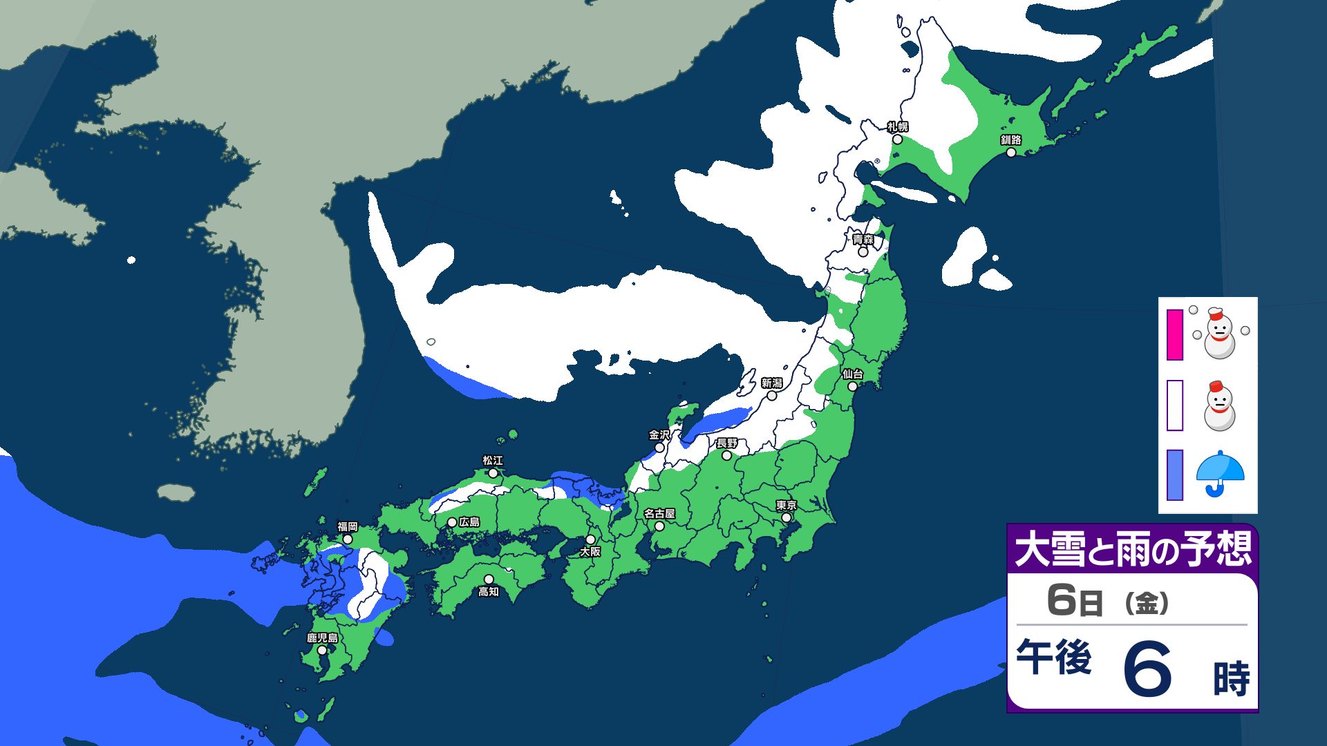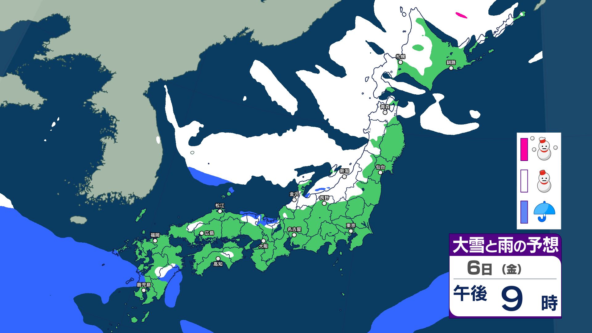【大雪情報】8日(日)は「警報級の大雪」おそれ 北陸70センチ、中国40センチ、近畿30センチ予想 あす6日(金)から雪へ 太平洋側も雪予報 雨雪シミュレーション