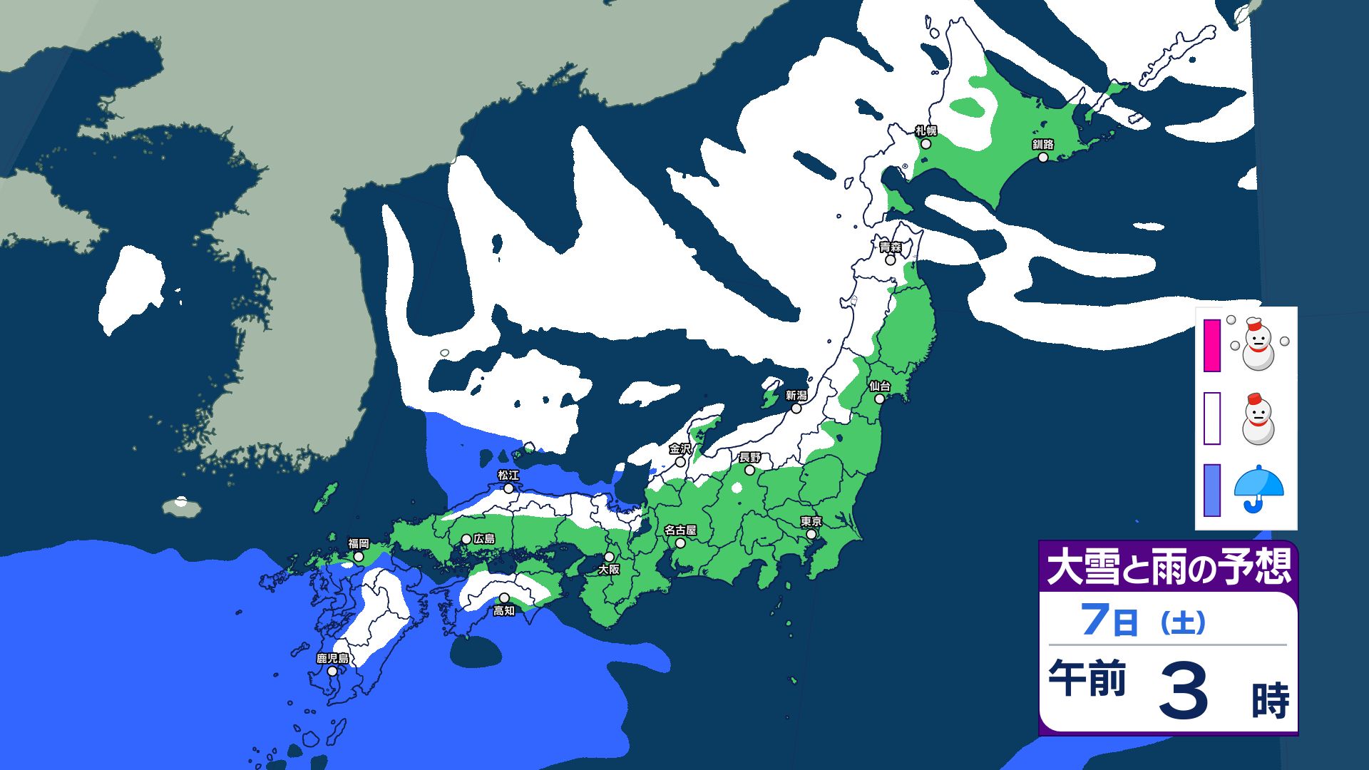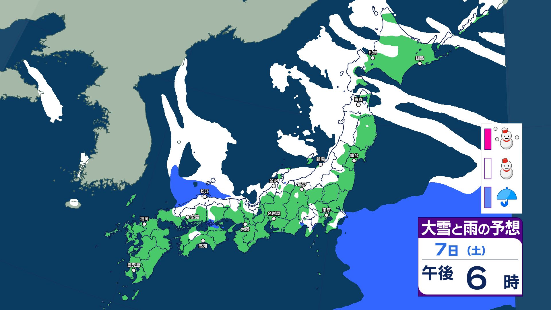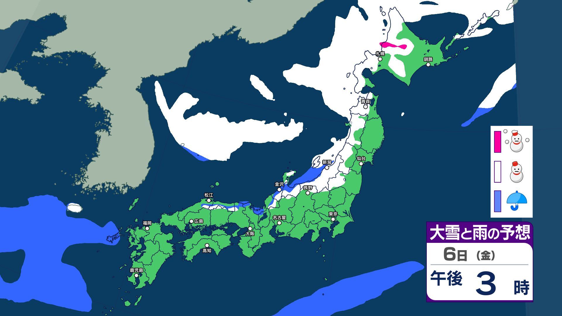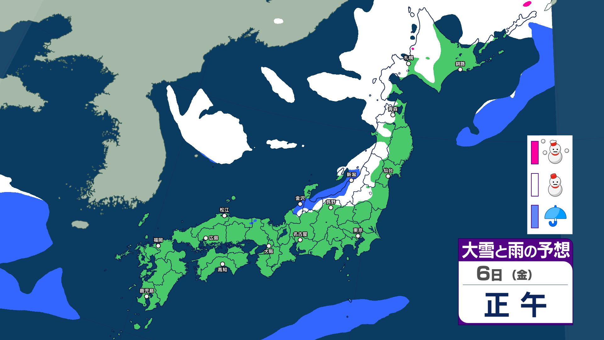 【大雪情報】8日(日)は「警報級の大雪」おそれ 北陸70センチ、中国40センチ、近畿30センチ予想 あす6日(金)から雪へ 太平洋側も雪予報 雨雪シミュレーション