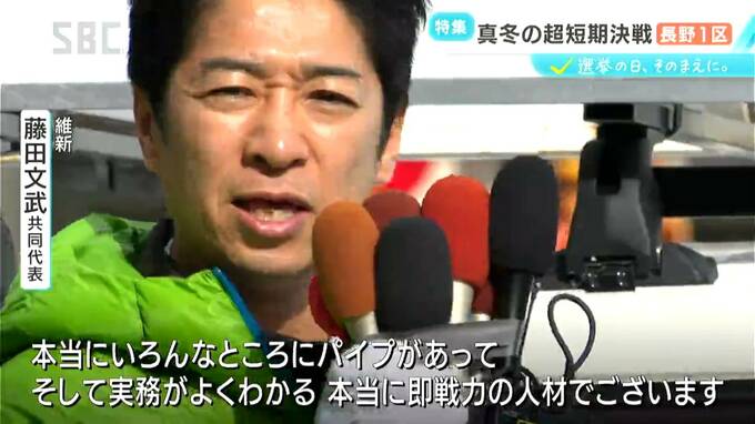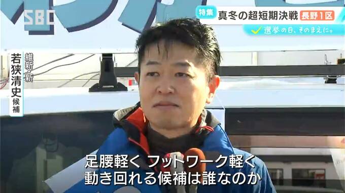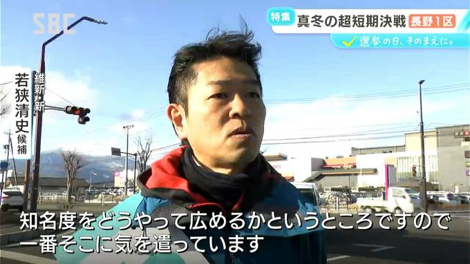 若狭候補:「知名度をどうやって広めるかというところですので、一番そこに気を使っています。めちゃくちゃ寒い中、昼も夜も外に出て、見てもらうの繰り返し。『おい、こんな雪の中来たのか。来たのおたくらだけだよ』と言っていただくくらい、いろんなとこに顔出しているかなと思います」