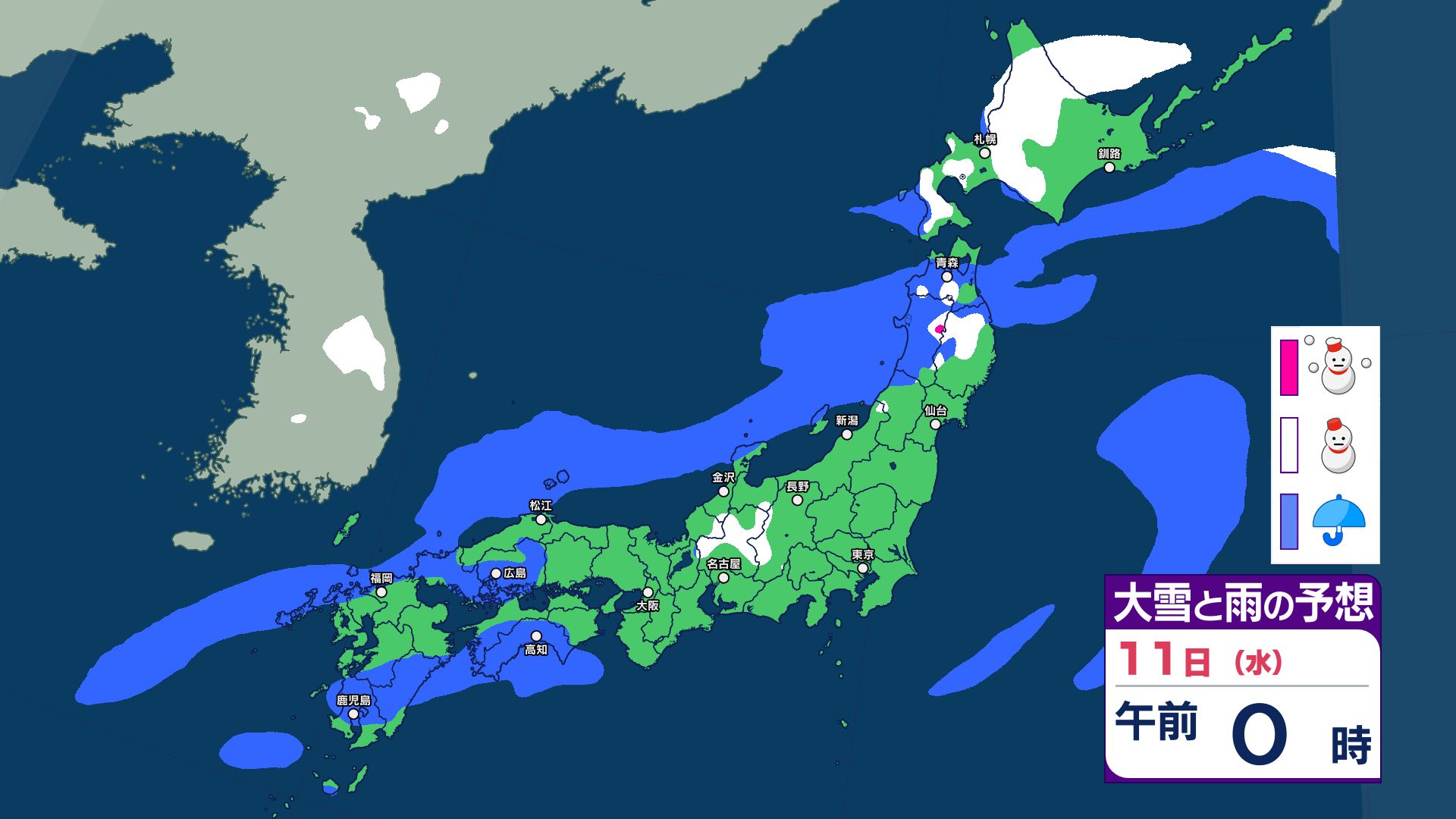【大雪情報】8日(日)は警報級の大雪の可能性…雪の少ない太平洋側で雪のところも …