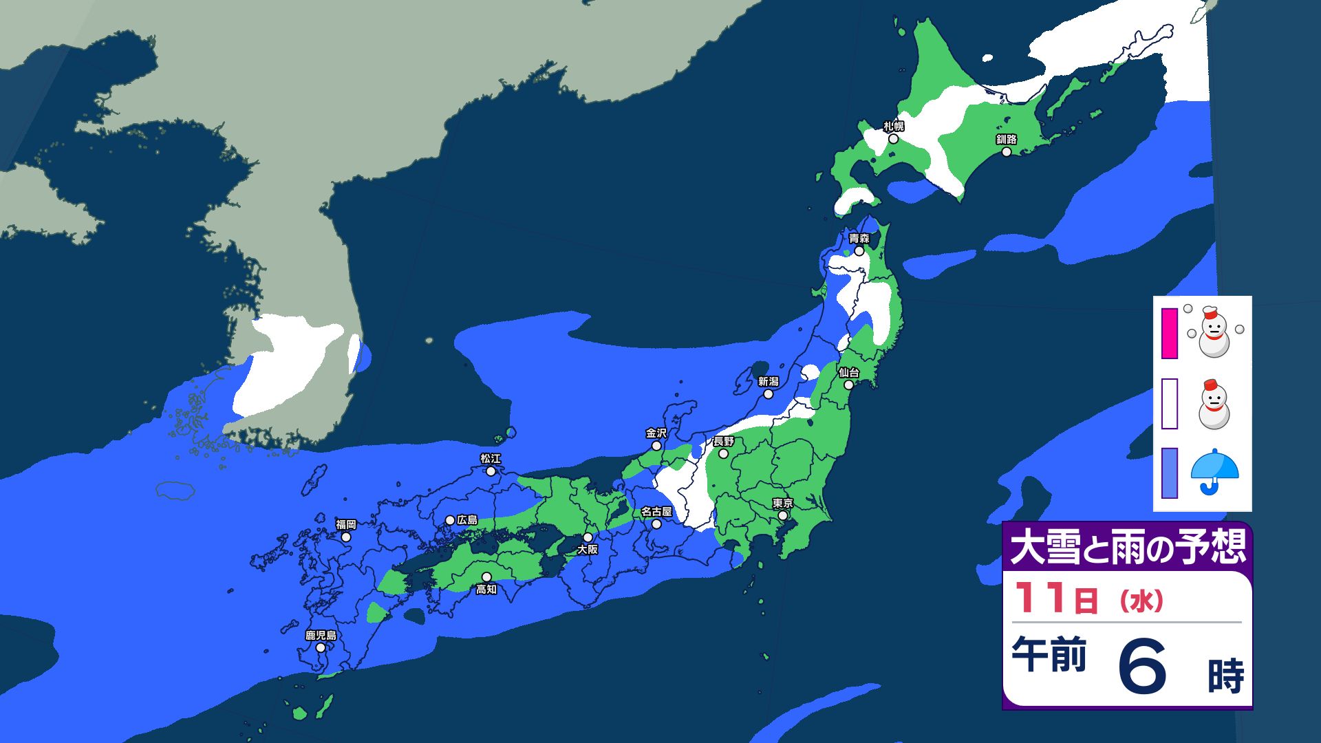 【大雪情報】8日(日)は日本海側中心に大雪の可能性 警報級の大雪のおそれ…予想降…