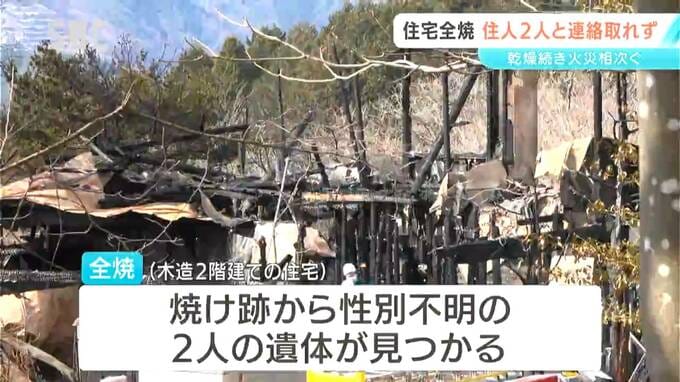 6日朝早く、塩尻市で住宅が全焼する火事があり、焼け跡から2人の遺体が見つかりました。警察によりますと、この家に住む親子と連絡が取れていないということです。