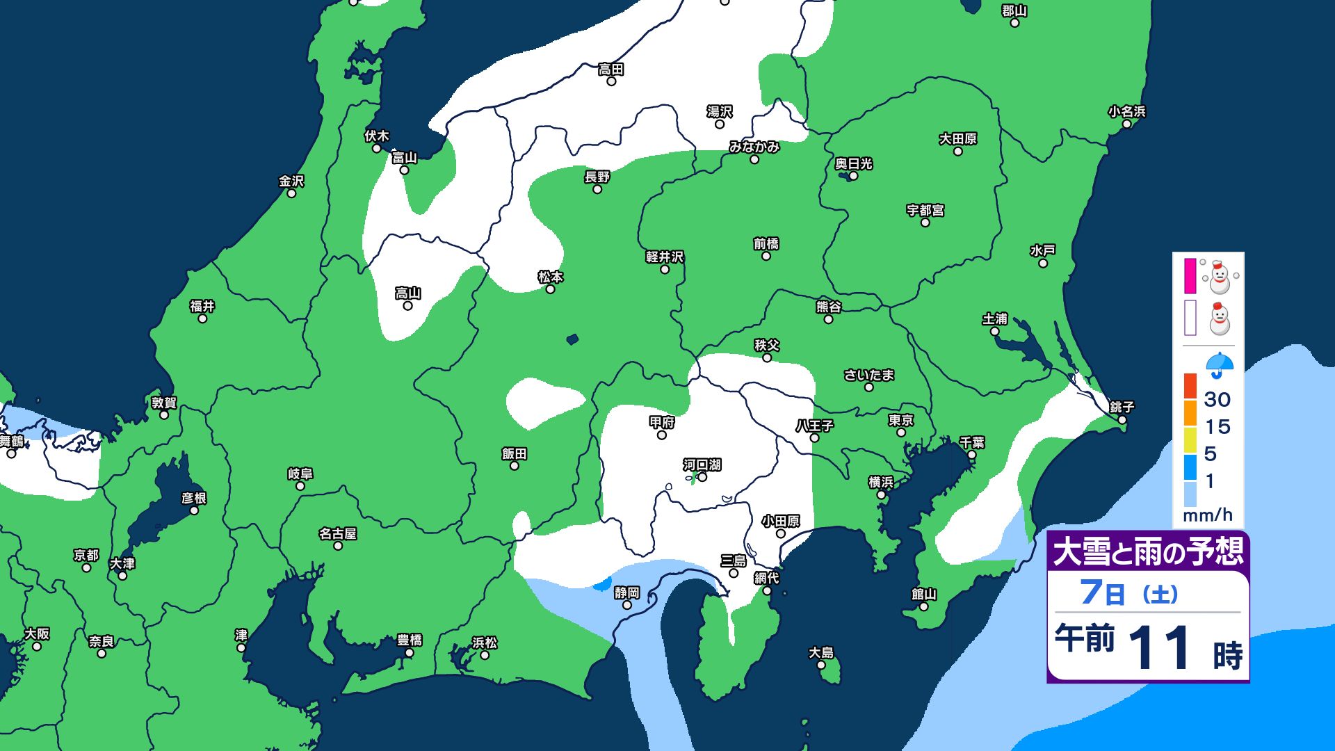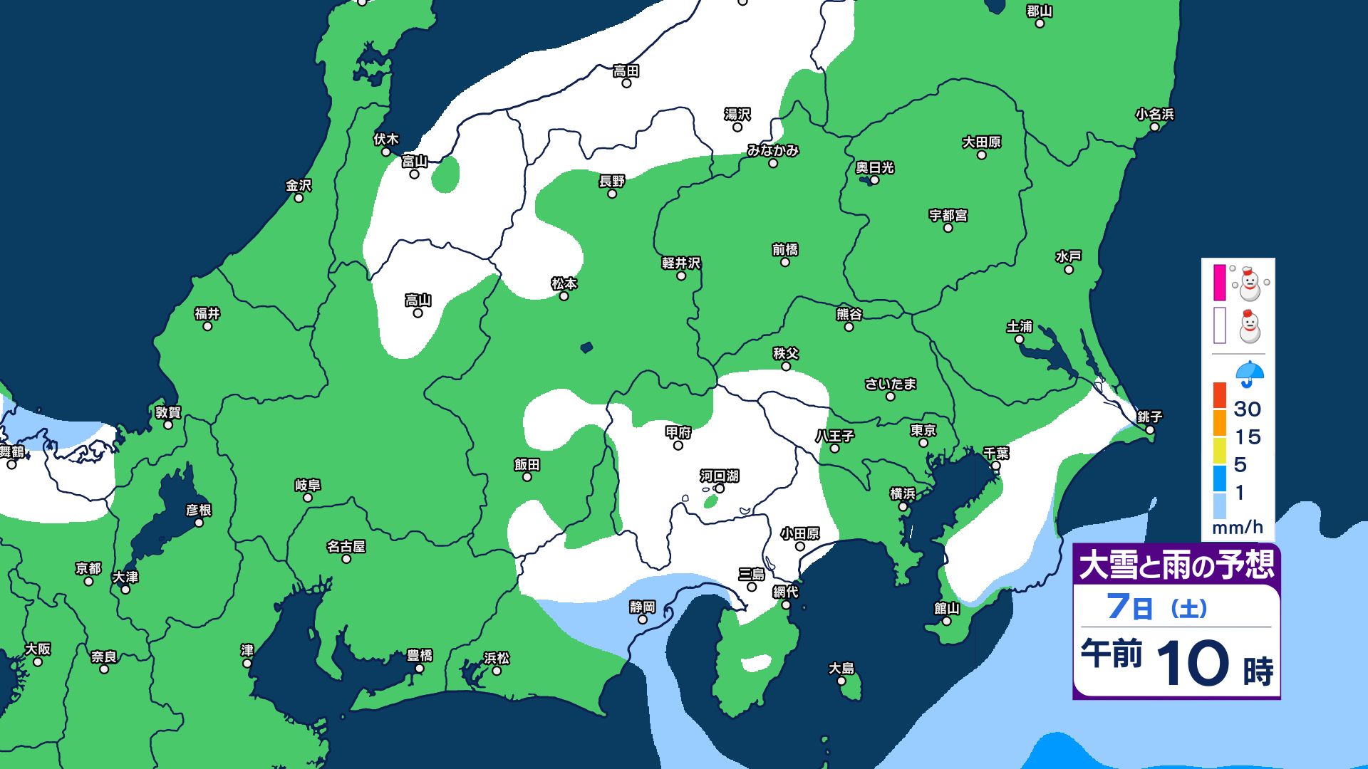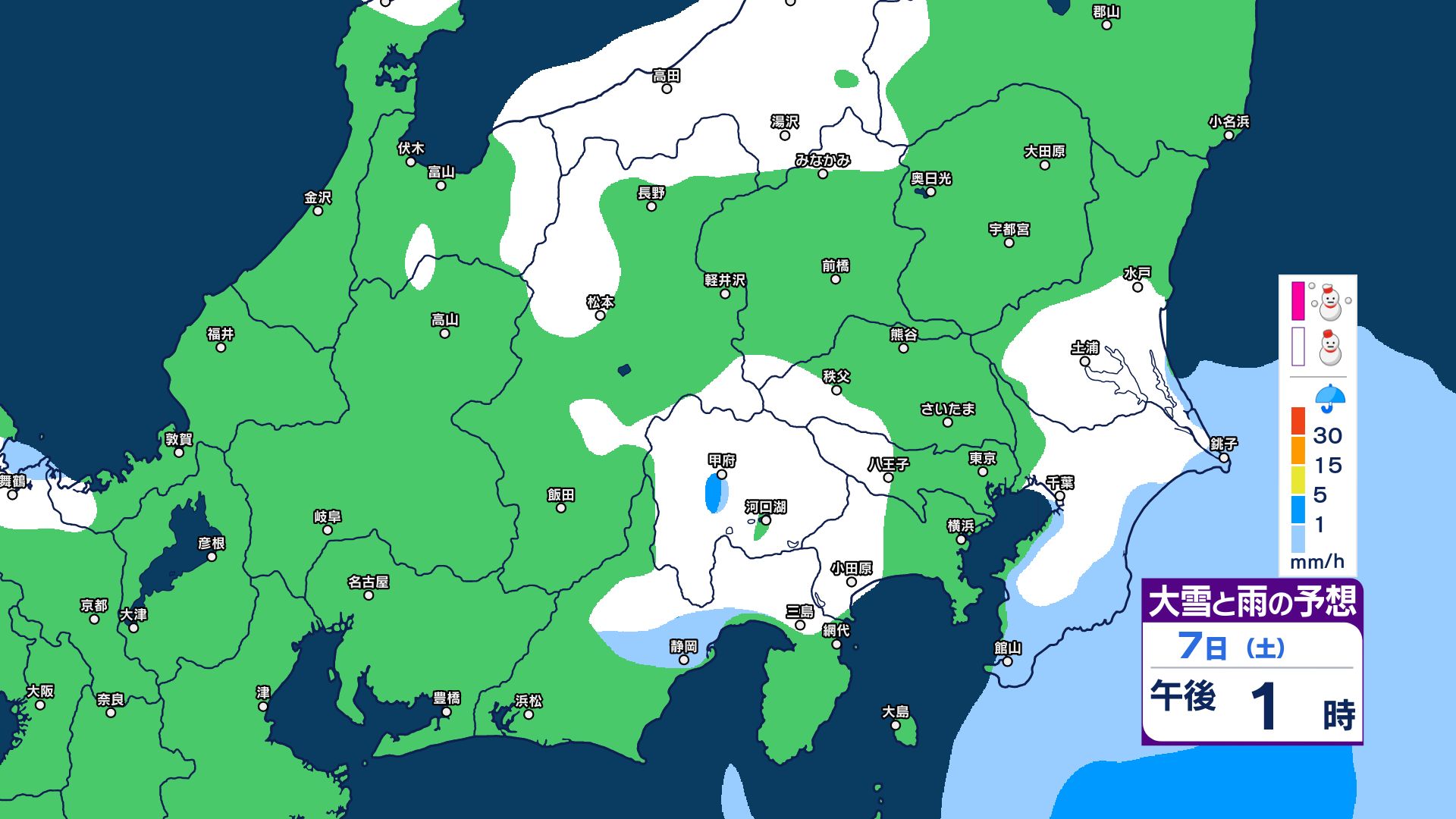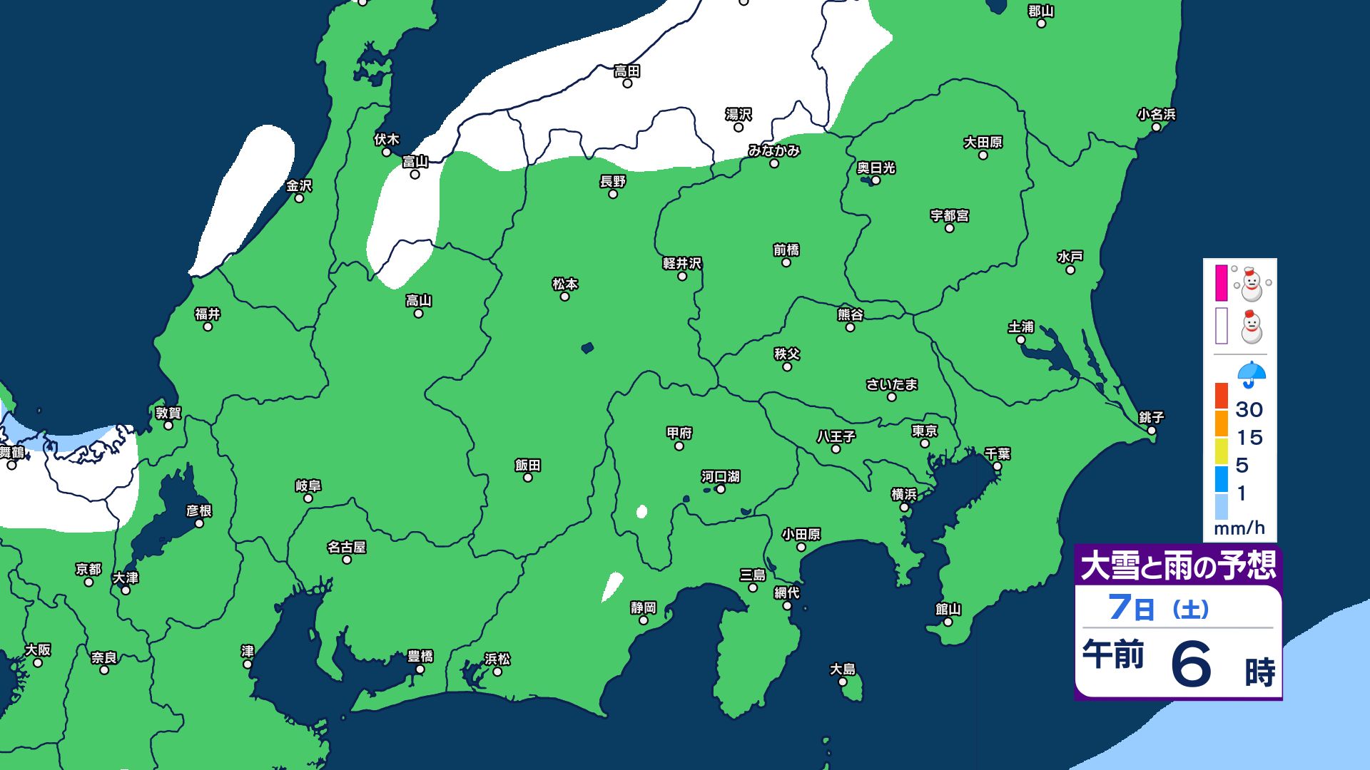 【関東甲信 1時間ごとの雪のシミュレーション】7日~8日にかけて広範囲で雪に…甲信40センチ・東京23区含む平地も積雪の可能性 気象庁発表 2026年2月6日(金) 19:56 国内 【雪のシミュレーション掲載】