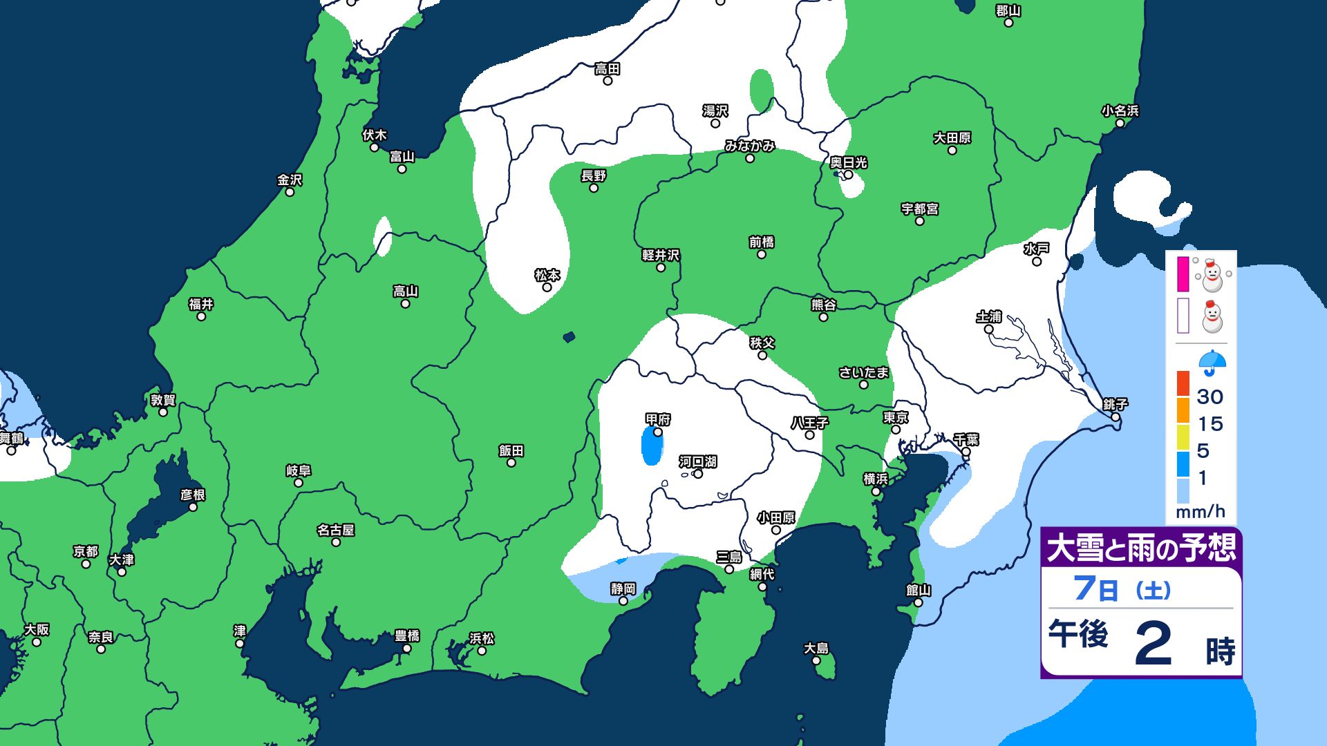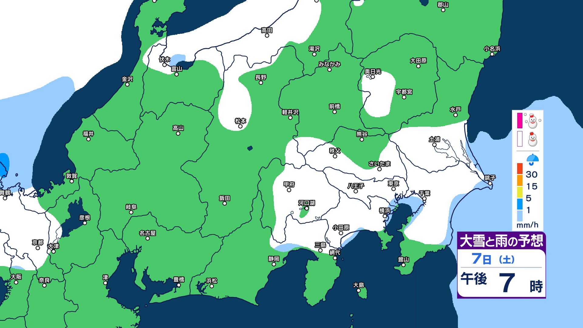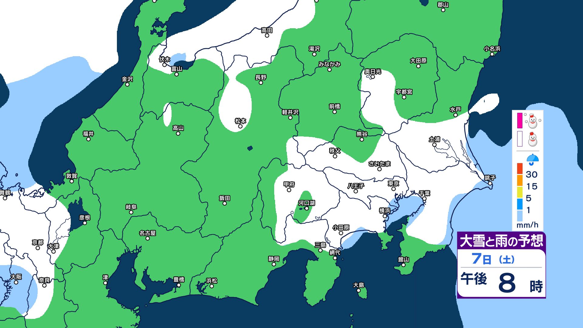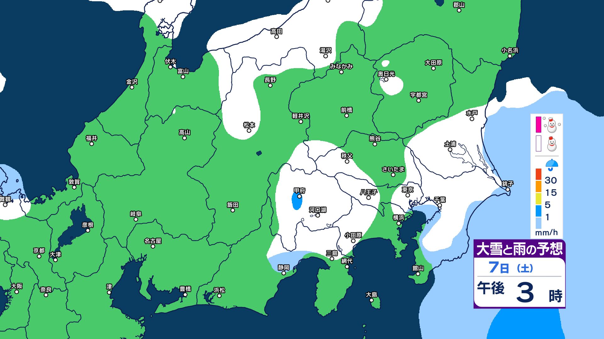 【関東甲信 1時間ごとの雪のシミュレーション】7日~8日にかけて広範囲で雪に…甲信40センチ・東京23区含む平地も積雪の可能性 気象庁発表 2026年2月6日(金) 19:56 国内 【雪のシミュレーション掲載】