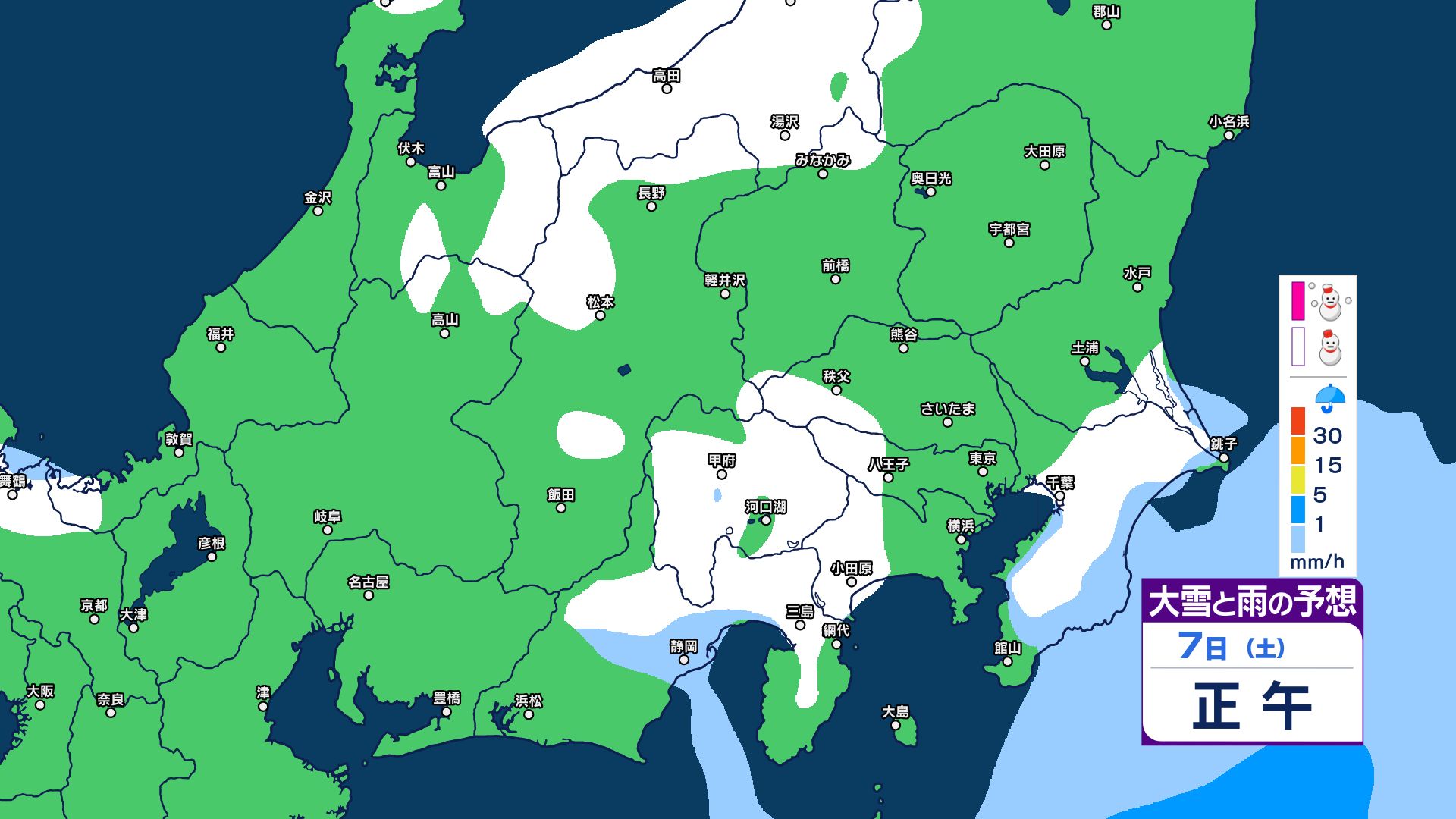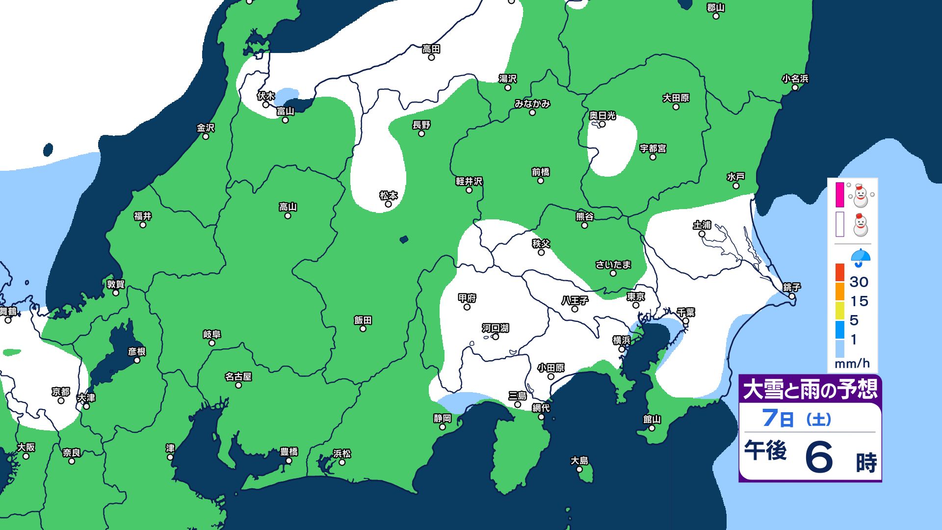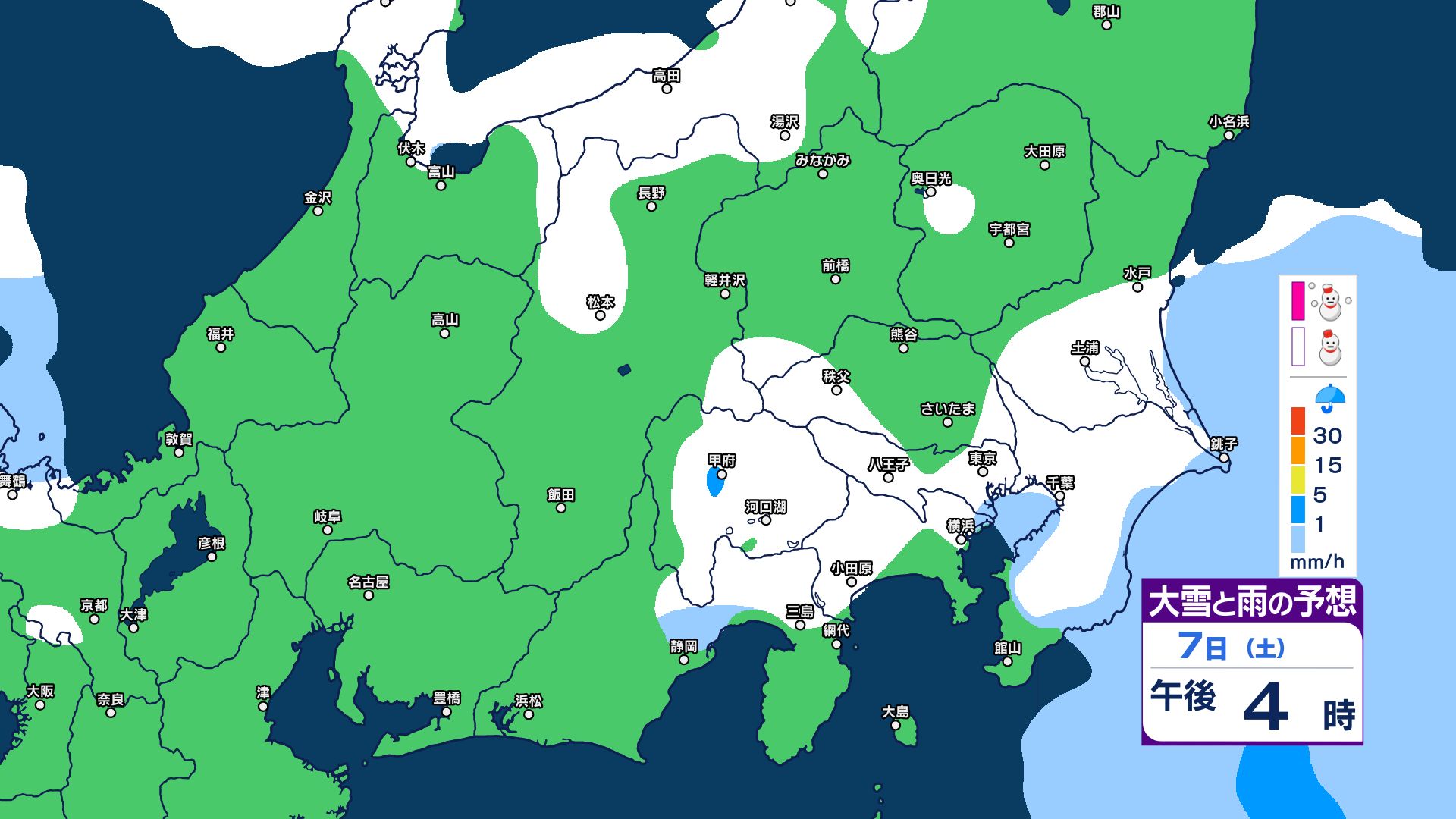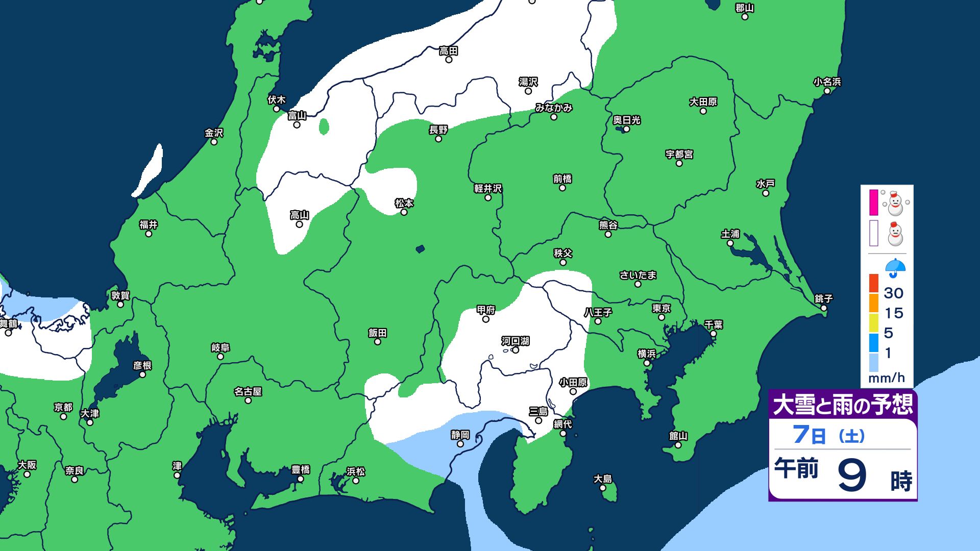 【関東甲信 1時間ごとの雪のシミュレーション】7日~8日にかけて広範囲で雪に…甲信40センチ・東京23区含む平地も積雪の可能性 気象庁発表 2026年2月6日(金) 19:56 国内 【雪のシミュレーション掲載】