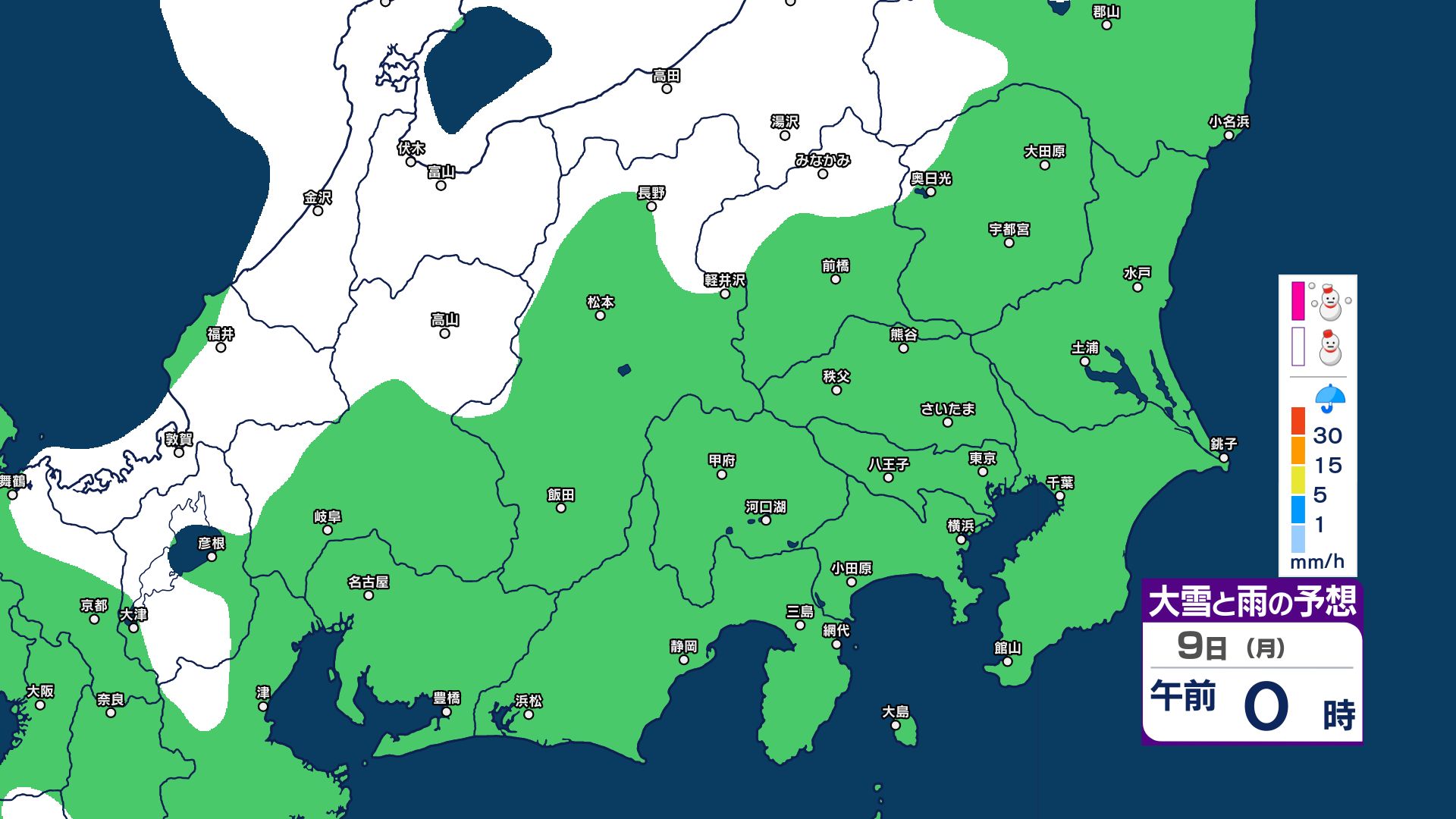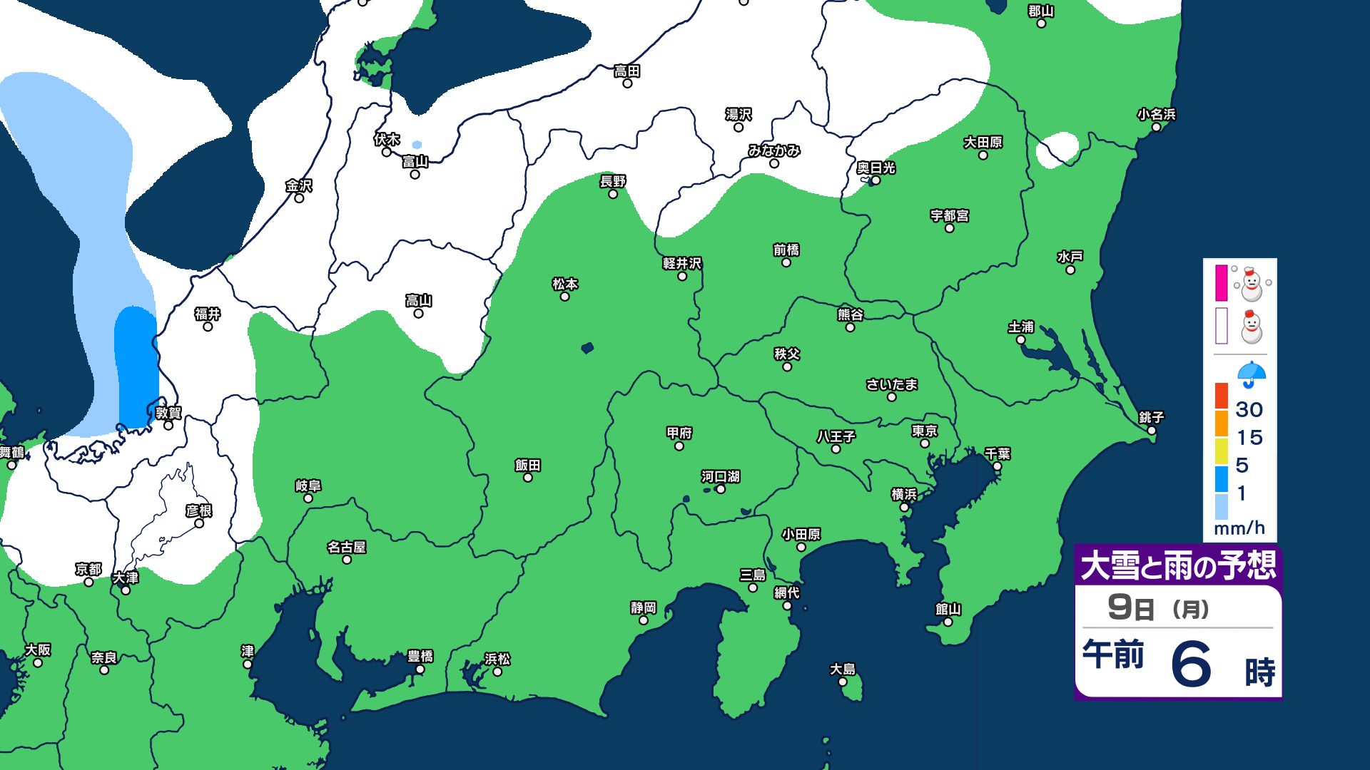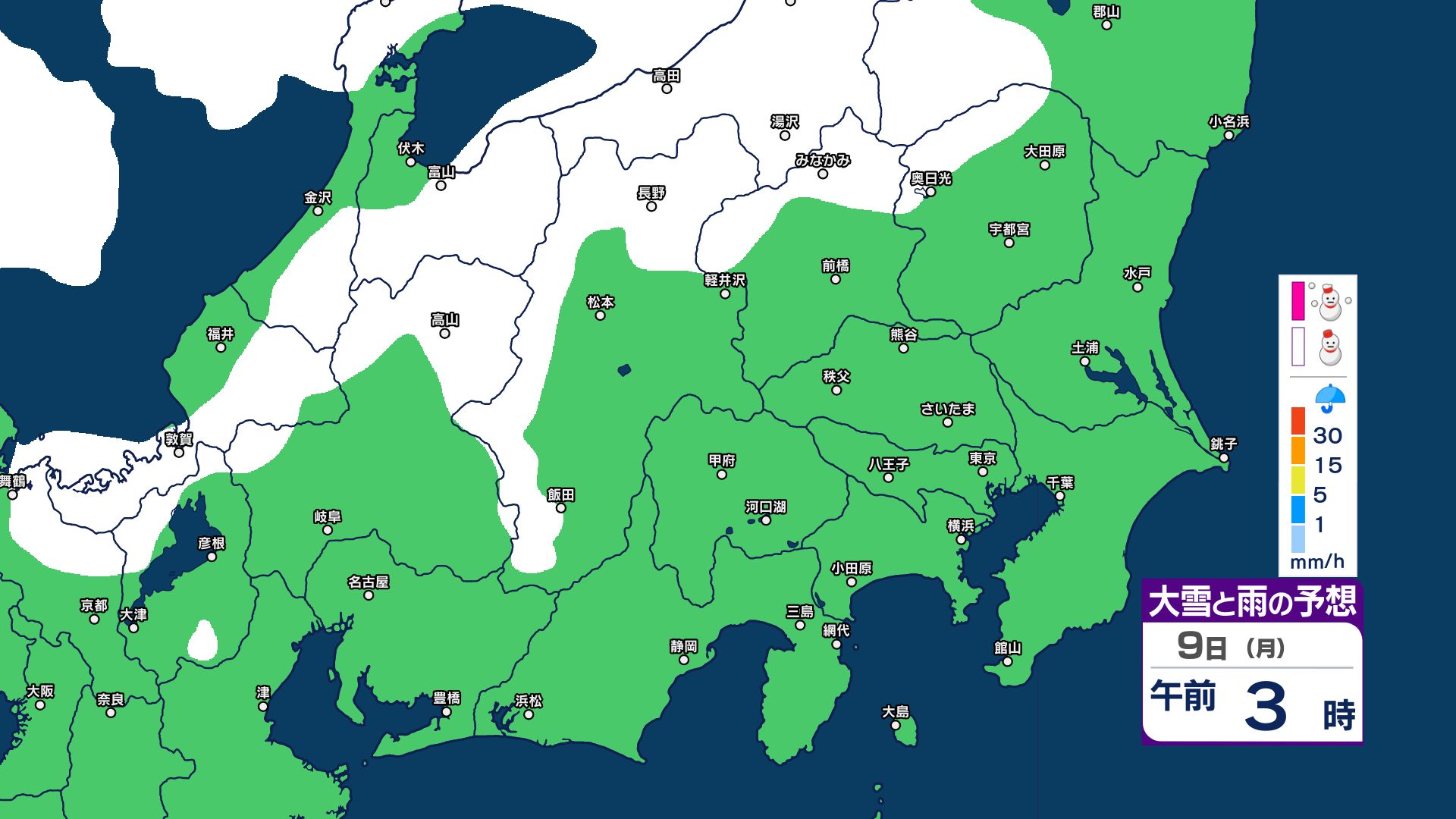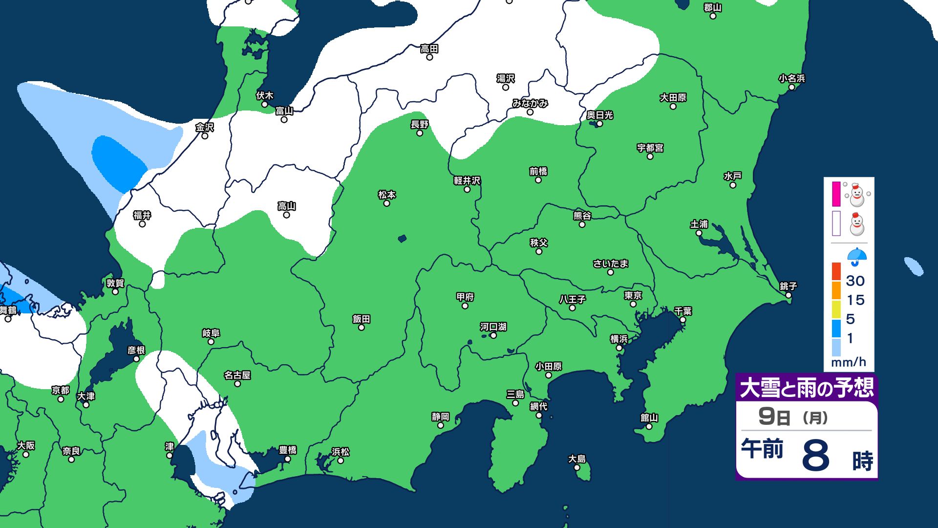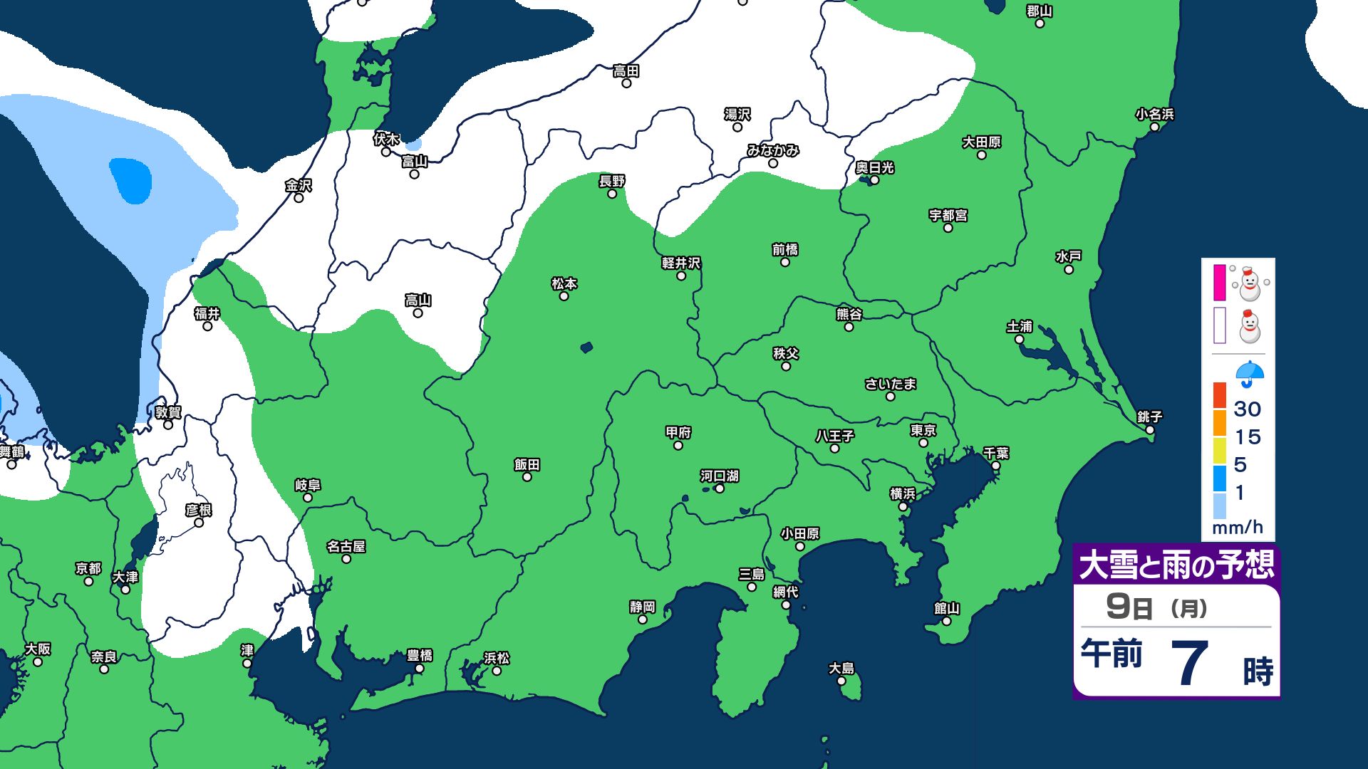 【関東甲信 1時間ごとの雪のシミュレーション】7日~8日にかけて広範囲で雪に…甲信40センチ・東京23区含む平地も積雪の可能性 気象庁発表