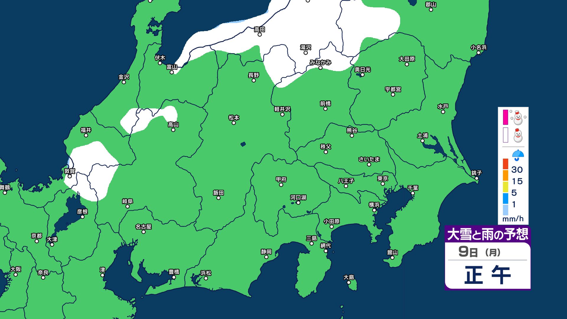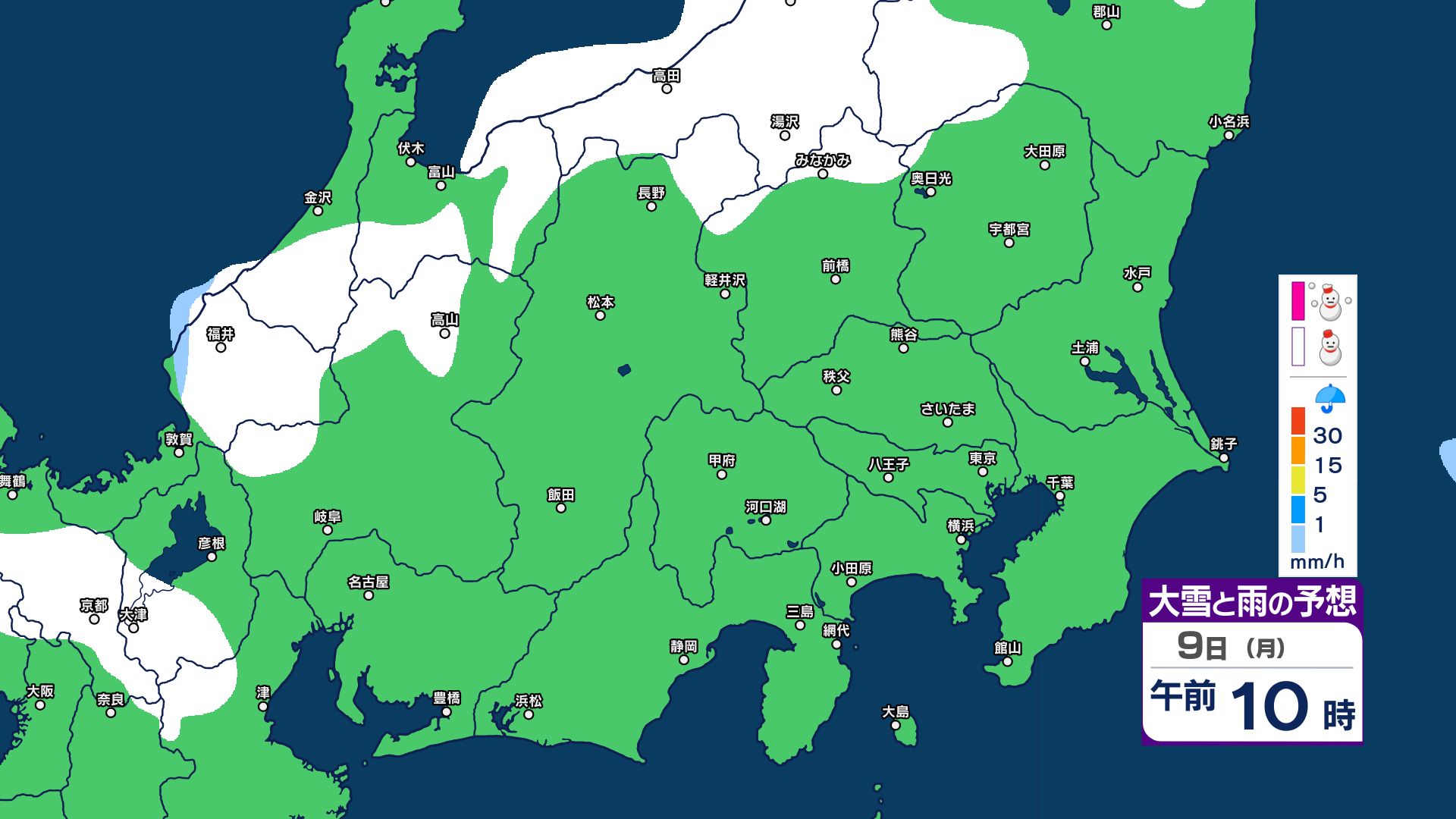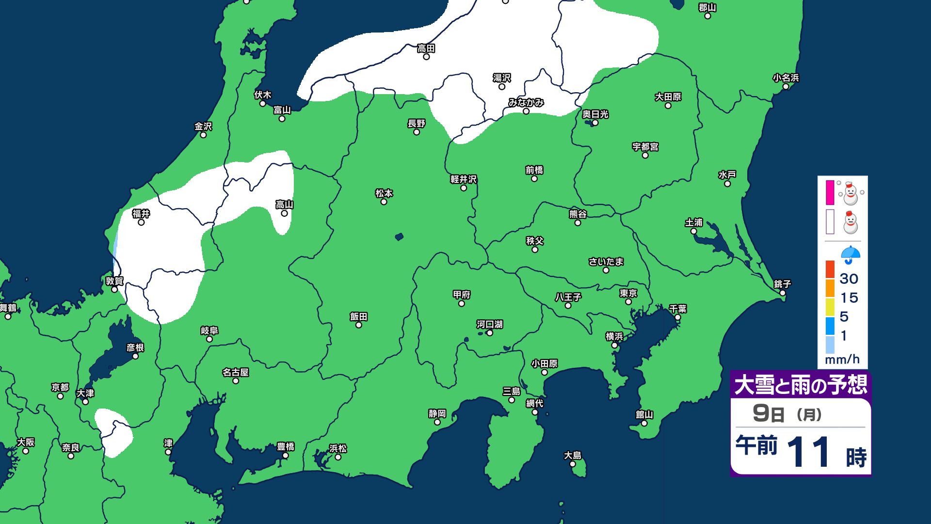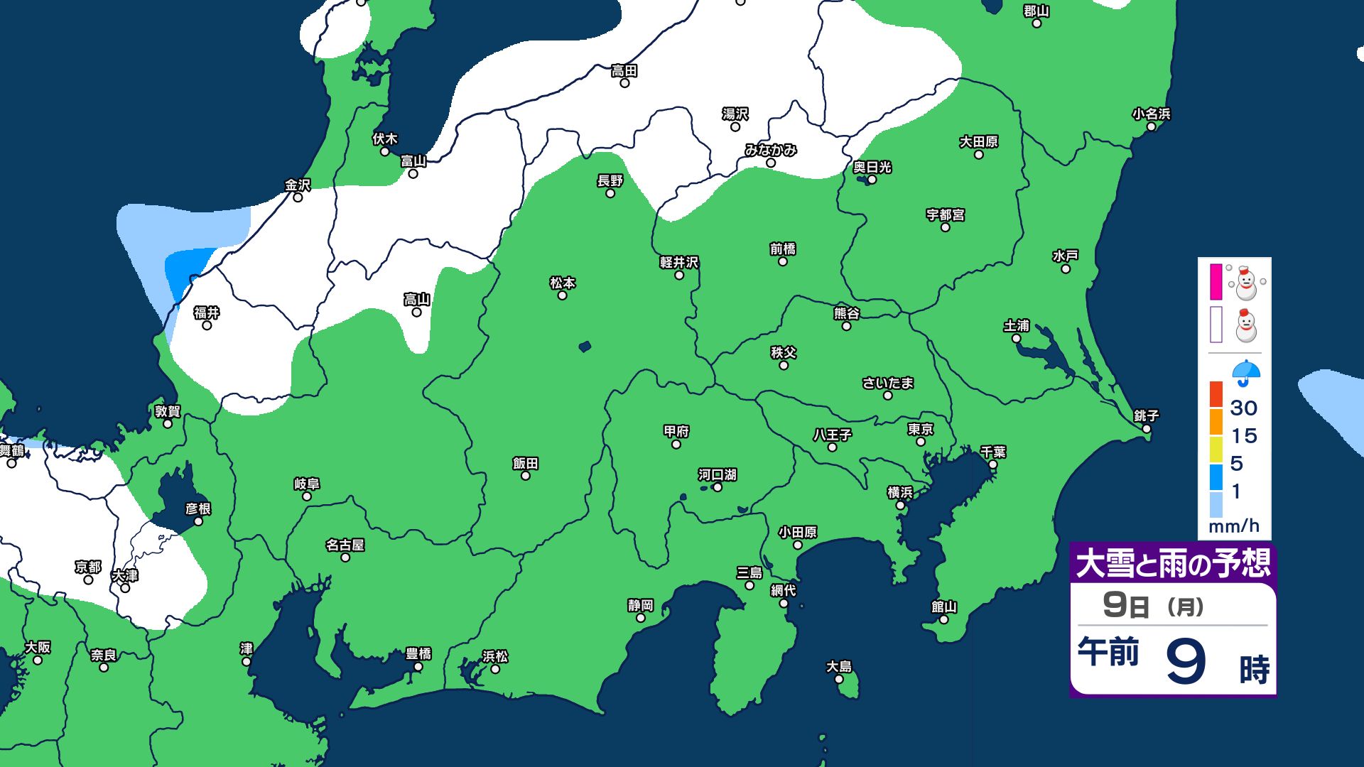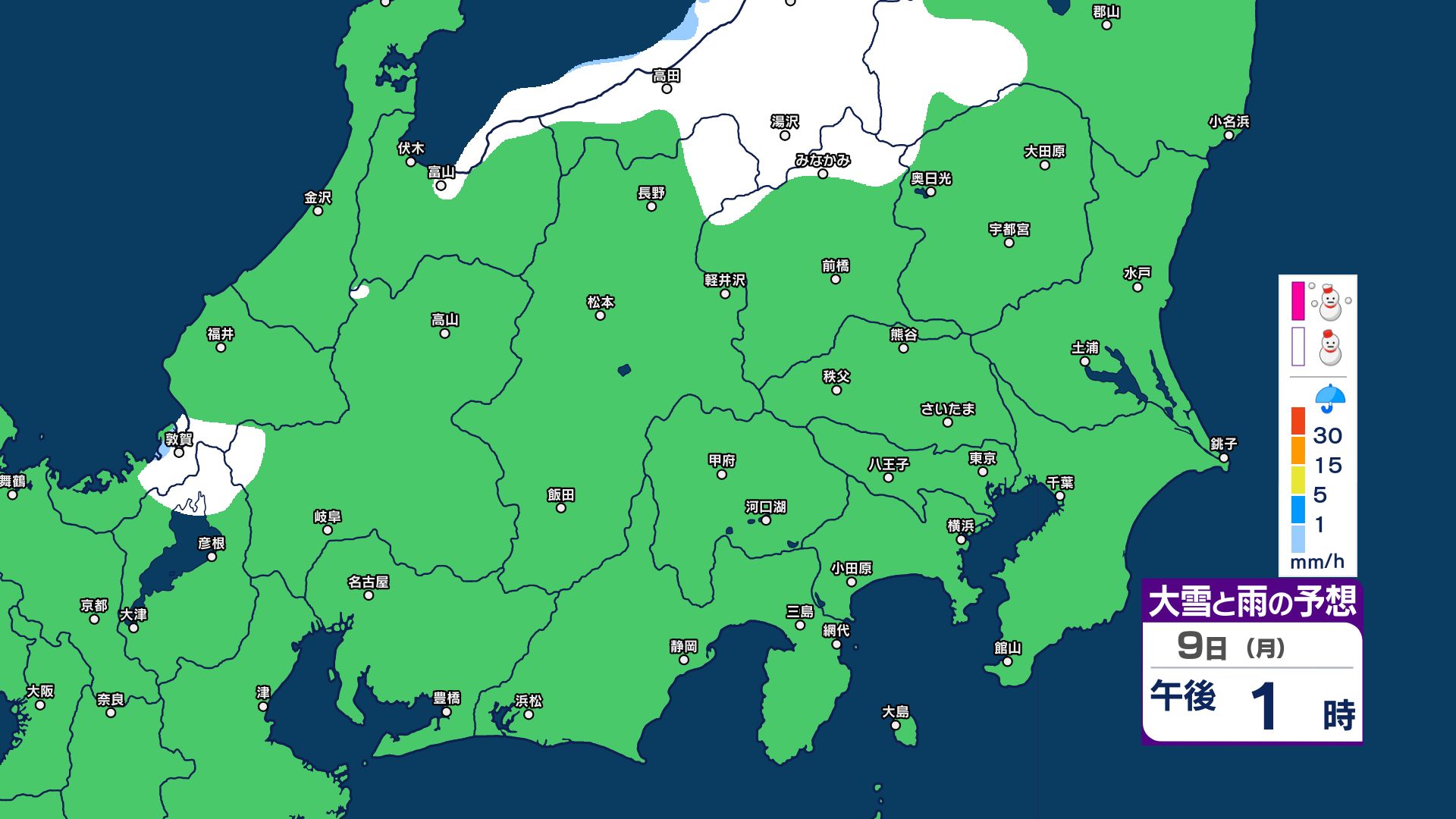 【関東甲信 1時間ごとの雪のシミュレーション】7日~8日にかけて広範囲で雪に…甲信40センチ・東京23区含む平地も積雪の可能性 気象庁発表
