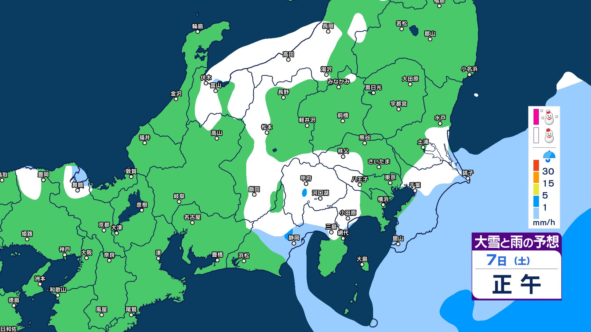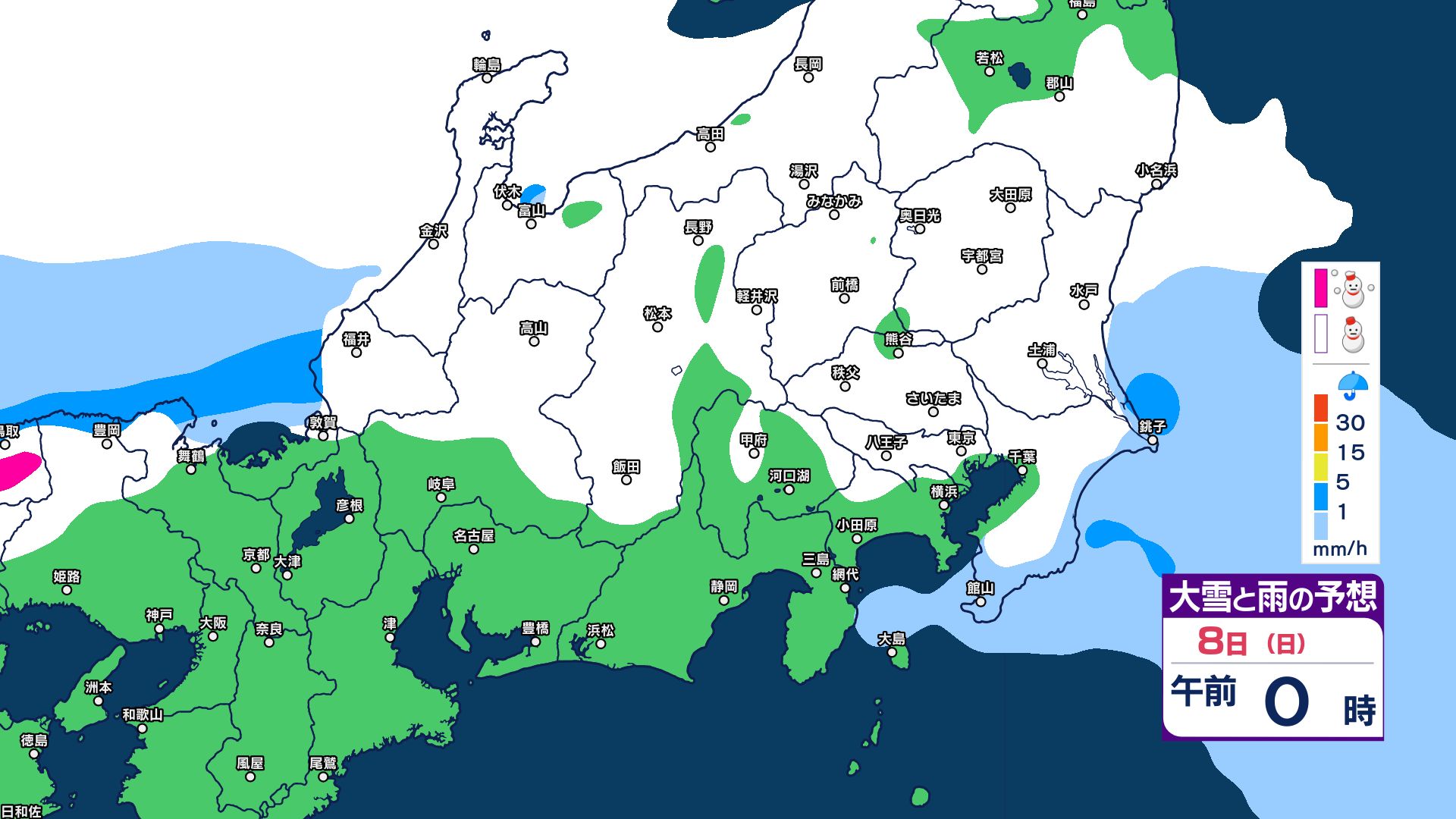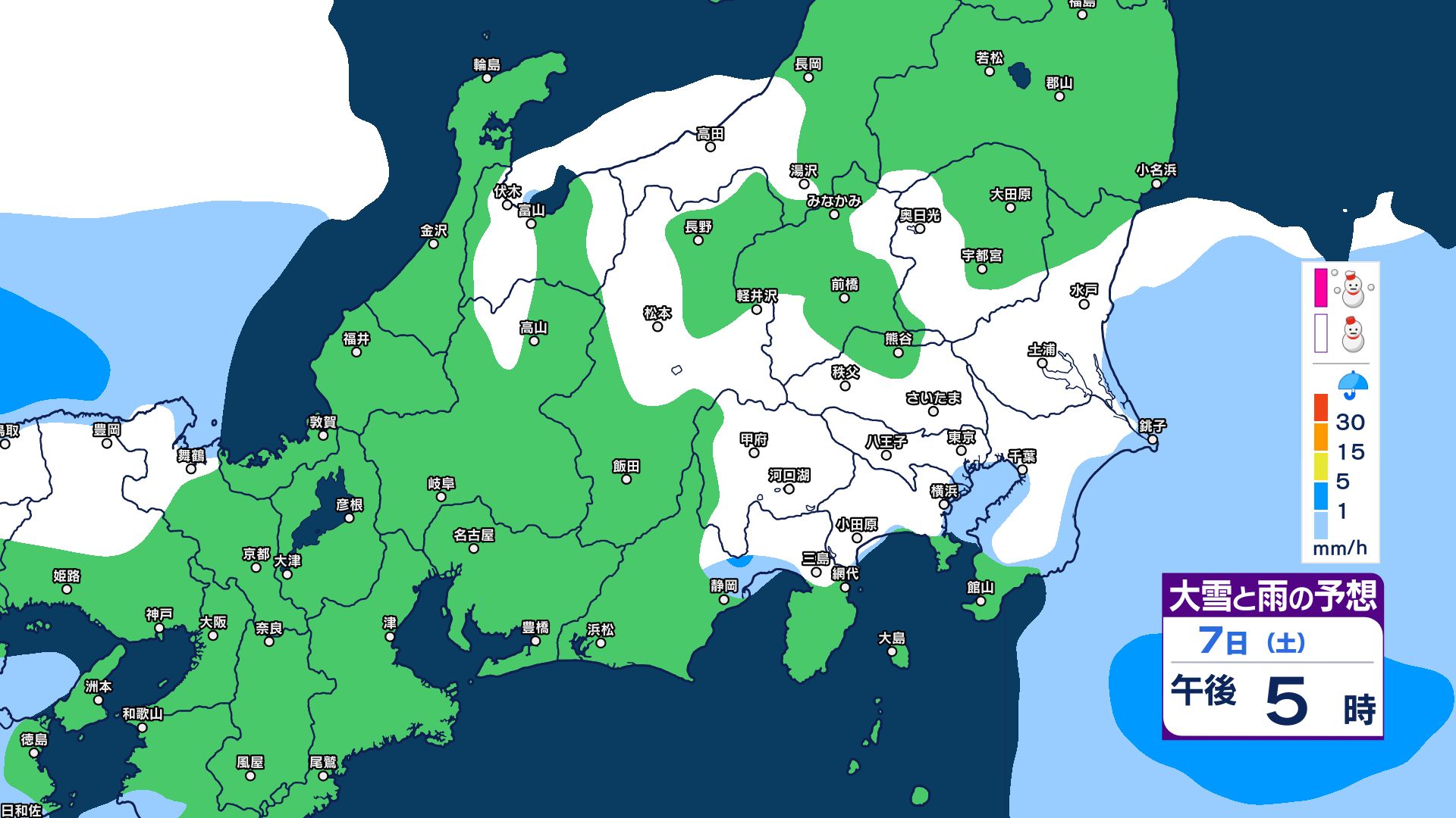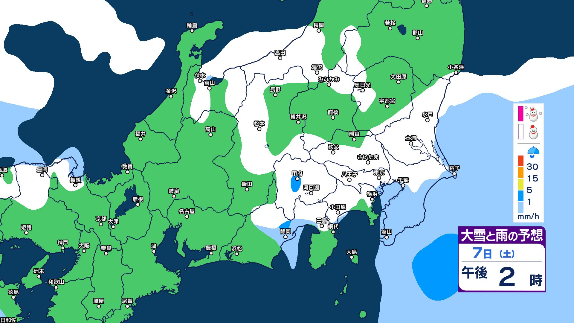 【関東甲信 大雪情報】関東南部の平地も積雪予想 7日昼過ぎ~8日夜遅く…警報級の大雪の可能性 長野北部40センチ・千葉10センチ・東京23区は2センチの降雪予想 気象庁発表【雪のシミュレーション掲載】 5時間前