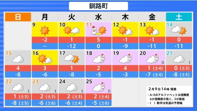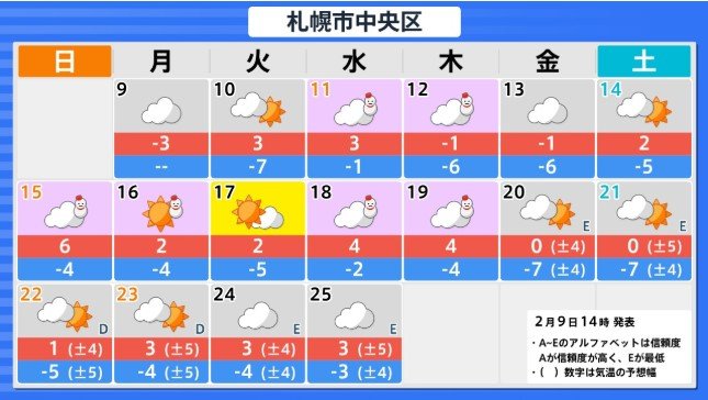 北海道地方 2月15日頃から かなりの高温