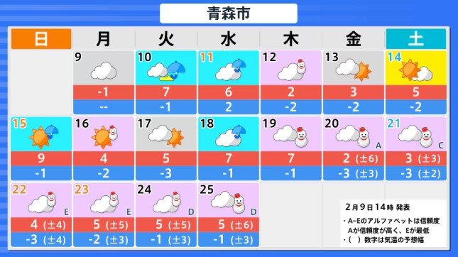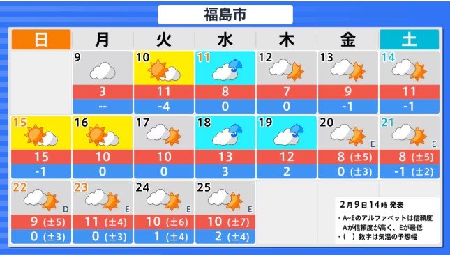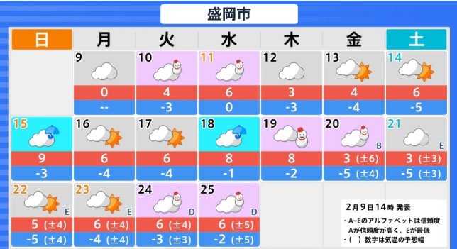 東北地方の向こう2週間の気温は、寒気の影響を受けにくいため高く、15日頃からはかなり高くなる可能性があります。農作物の管理等に注意してください。