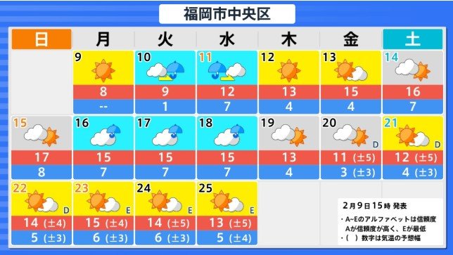 九州北部地方(山口県を含む) 2月15日頃から かなりの高温