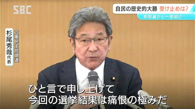 立憲民主党県連 杉尾代表:「旧民主党時代から考えて(県内で)衆議院の議席がゼロというのは初めてであります。一言で申し上げて、今回の選挙結果は痛恨の極みだ」
