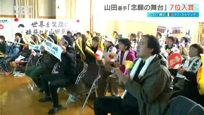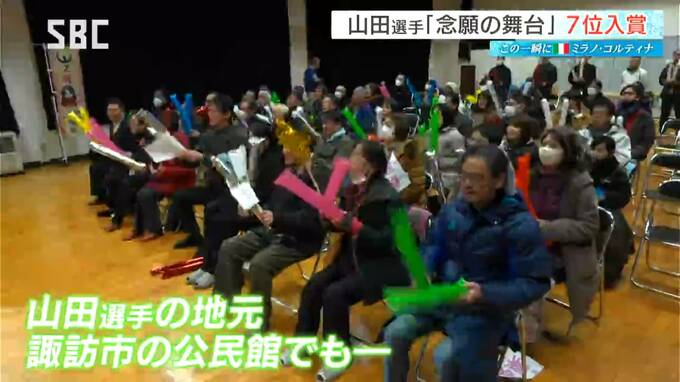 山田選手の母校・伊那西高校では、高校時代の担任や同級生などおよそ60人が集まり、声援を送りました。