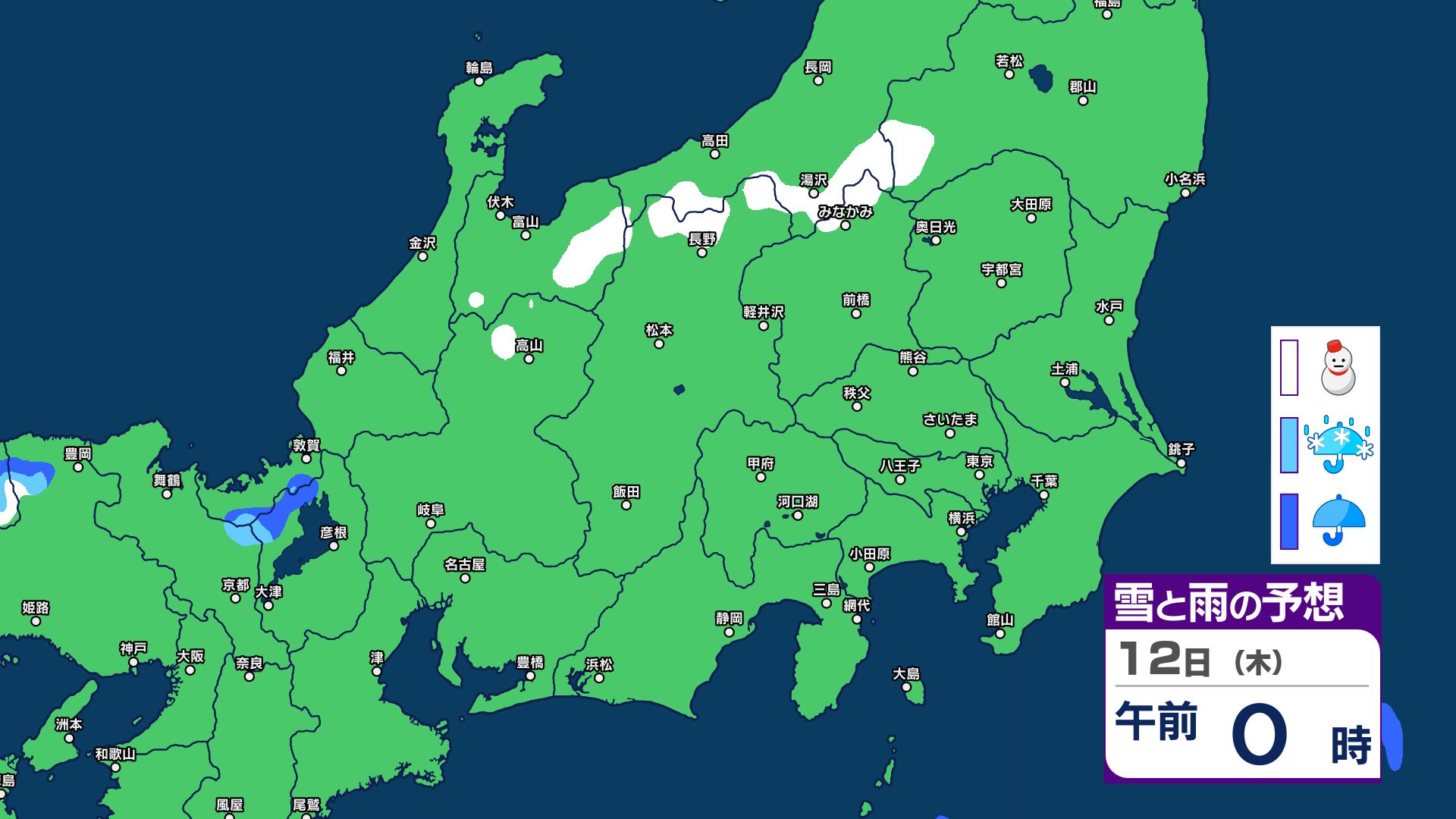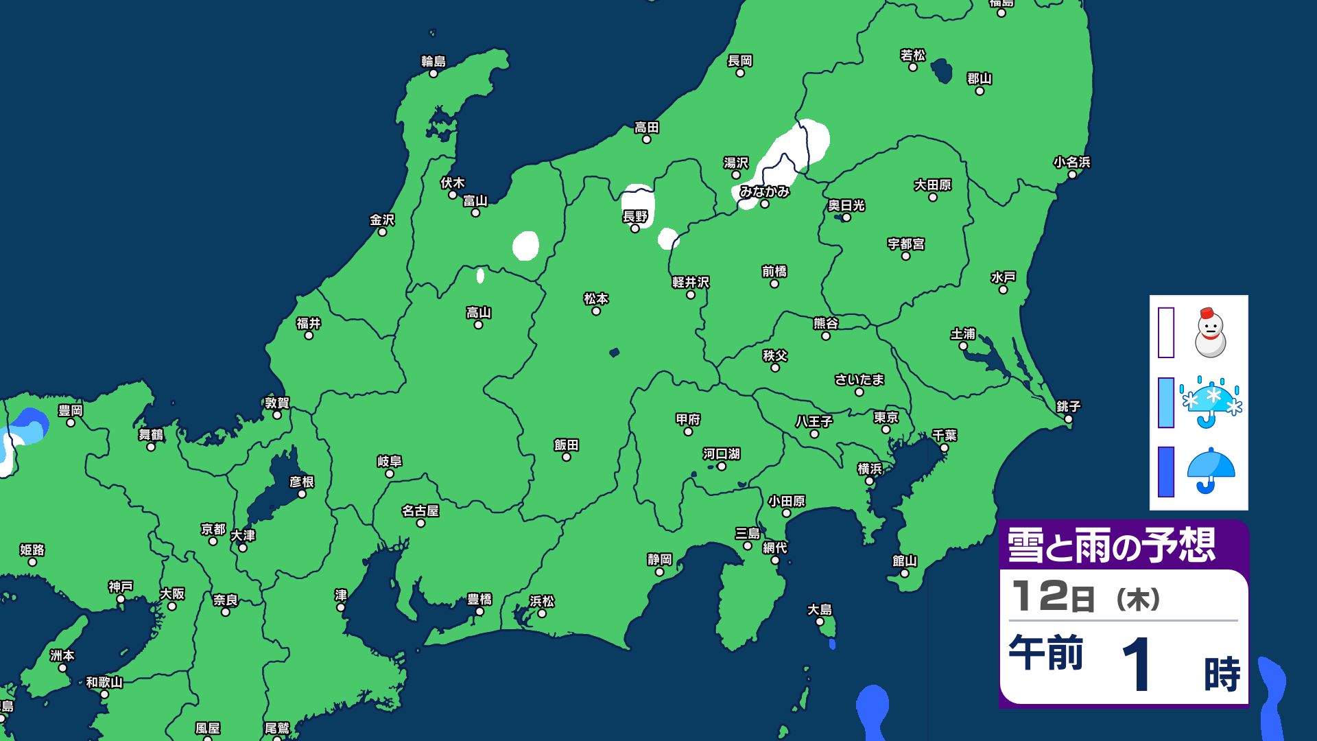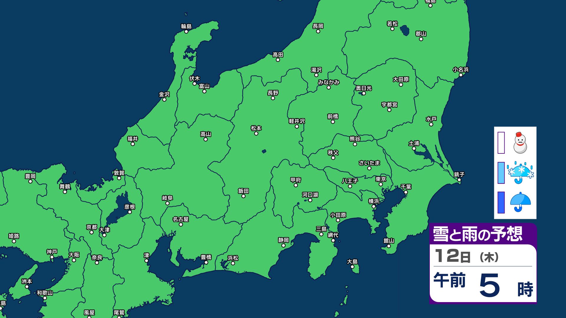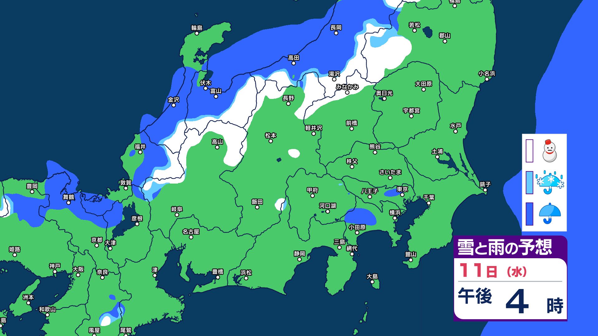 【関東甲信 1時間ごとの雪と雨のシミュレーション】あす11日(祝日)は神奈川・千葉で警報級の大雨の可能性 関東甲信は前線伴った低気圧の通過…広範囲で雨か雪に 長野は雪に注意 2026年2月10日(火) 21:29 国内