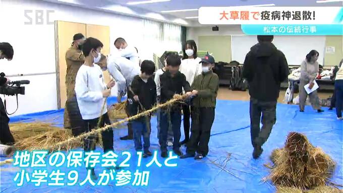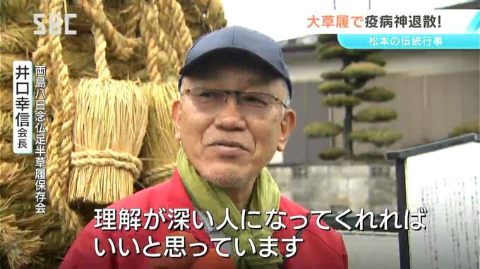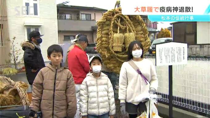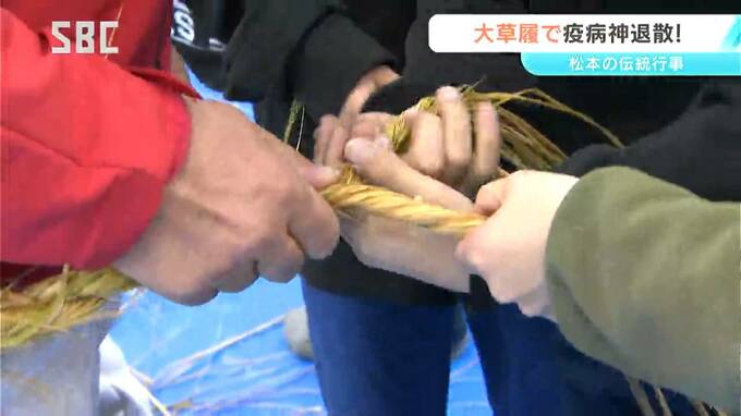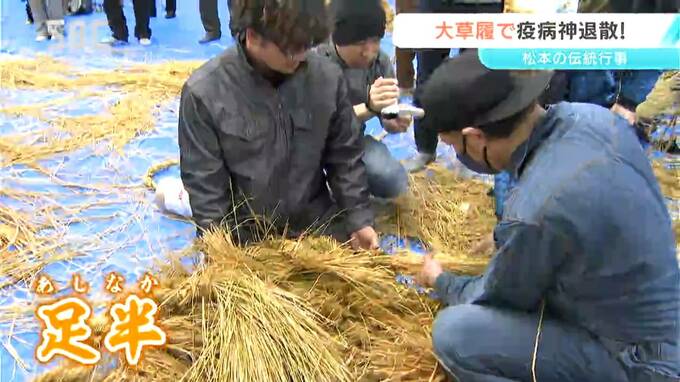 松本市では11日、大きな草履を編んで疫病神を追い払い、一年の無病息災を祈るという伝統行事が行われました。江戸時代から続くとされる歴史ある草履づくりです。
