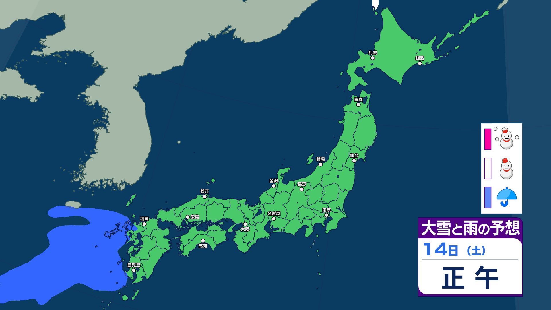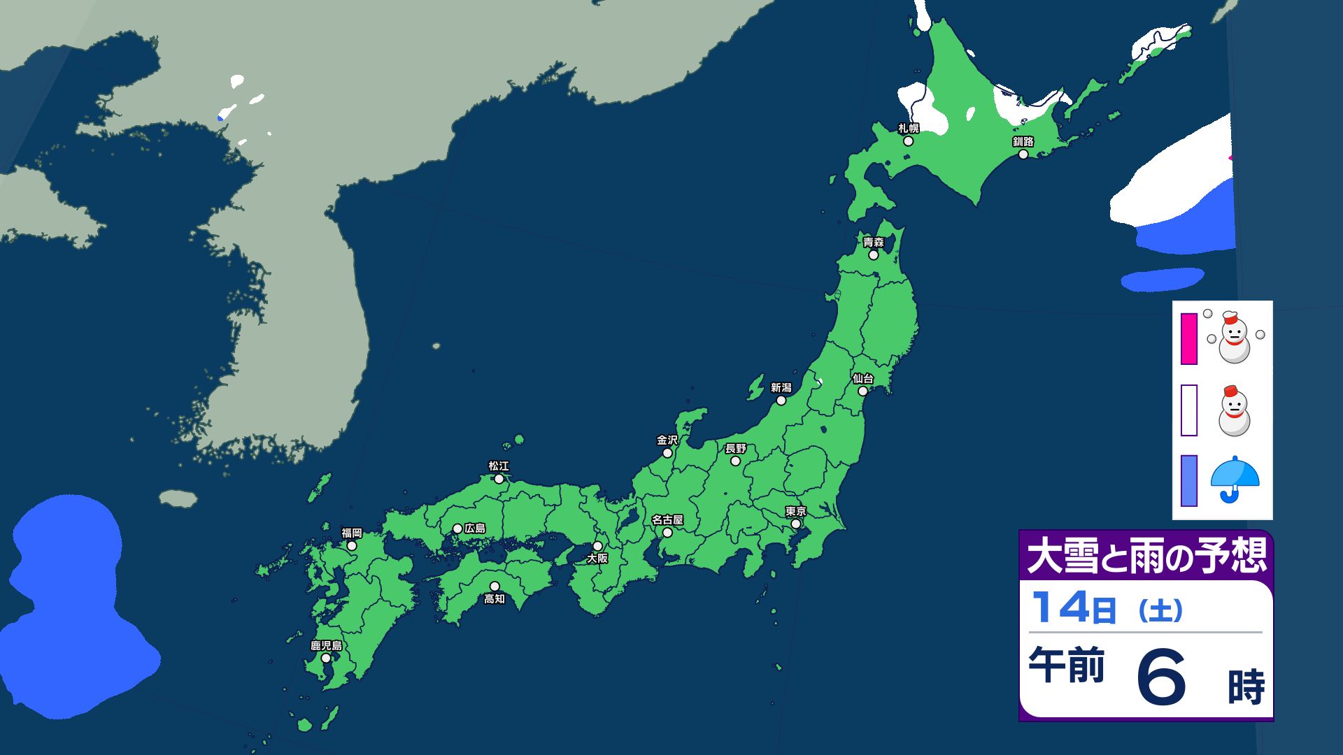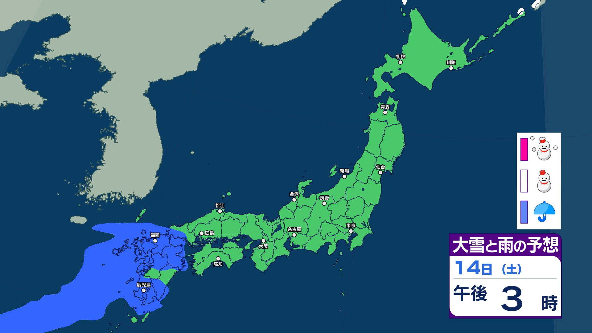 週末14日は九州で雨予想 15日は気温上昇で北日本~西日本は雪崩に注意…上空1500m付近で平年より10℃前後高く【18日まで 雪と雨のシミュレーション掲載】 2026年2月13日(金) 15:45 国内 【18日まで 雪と雨のシミュレーション掲載】