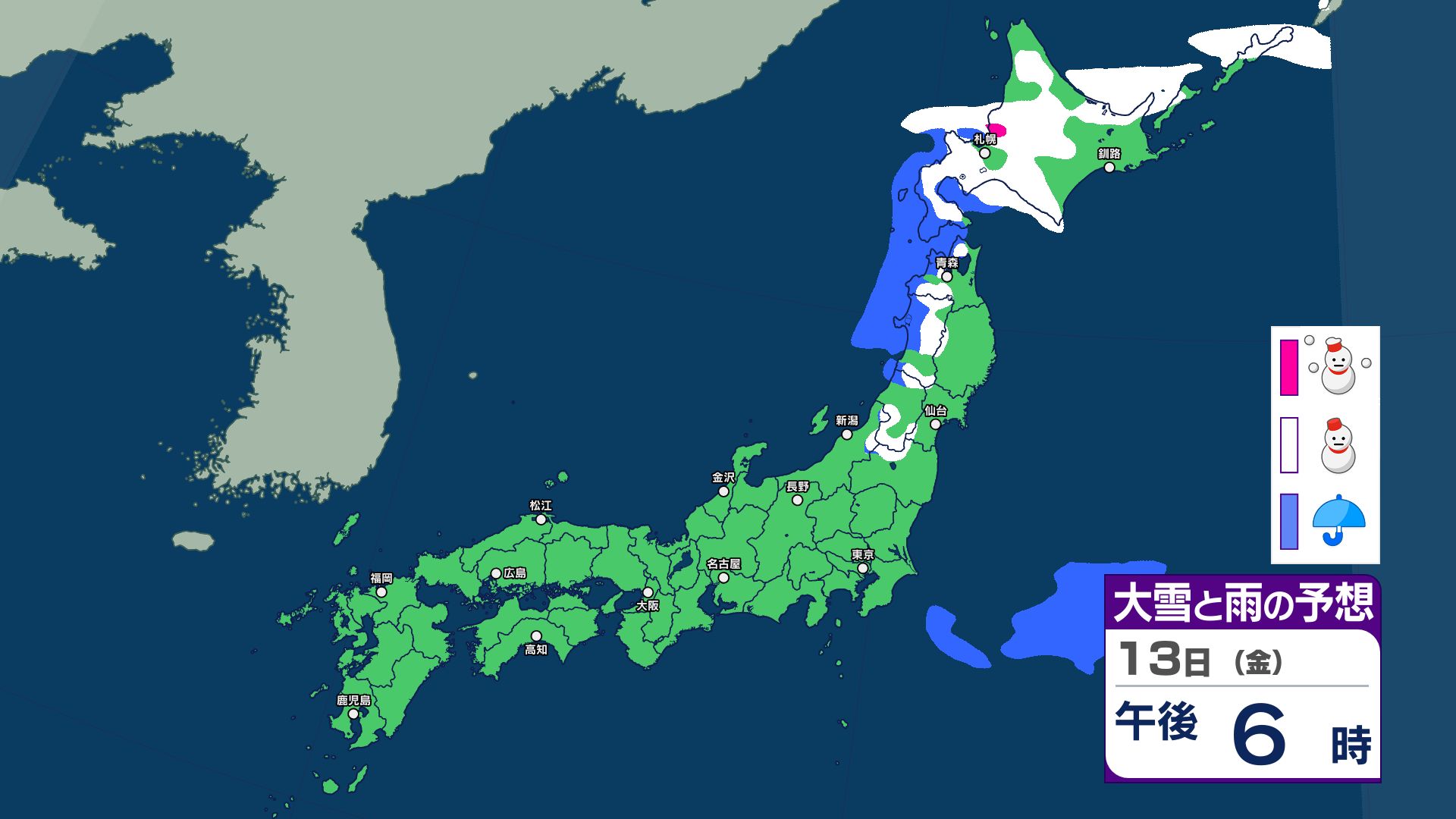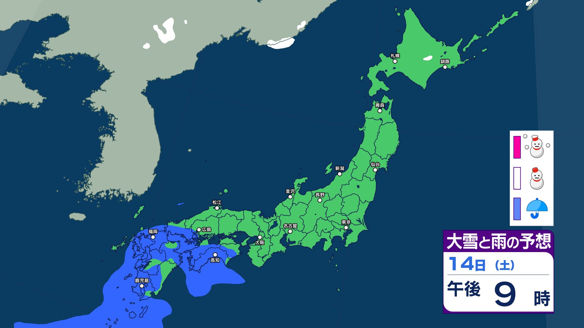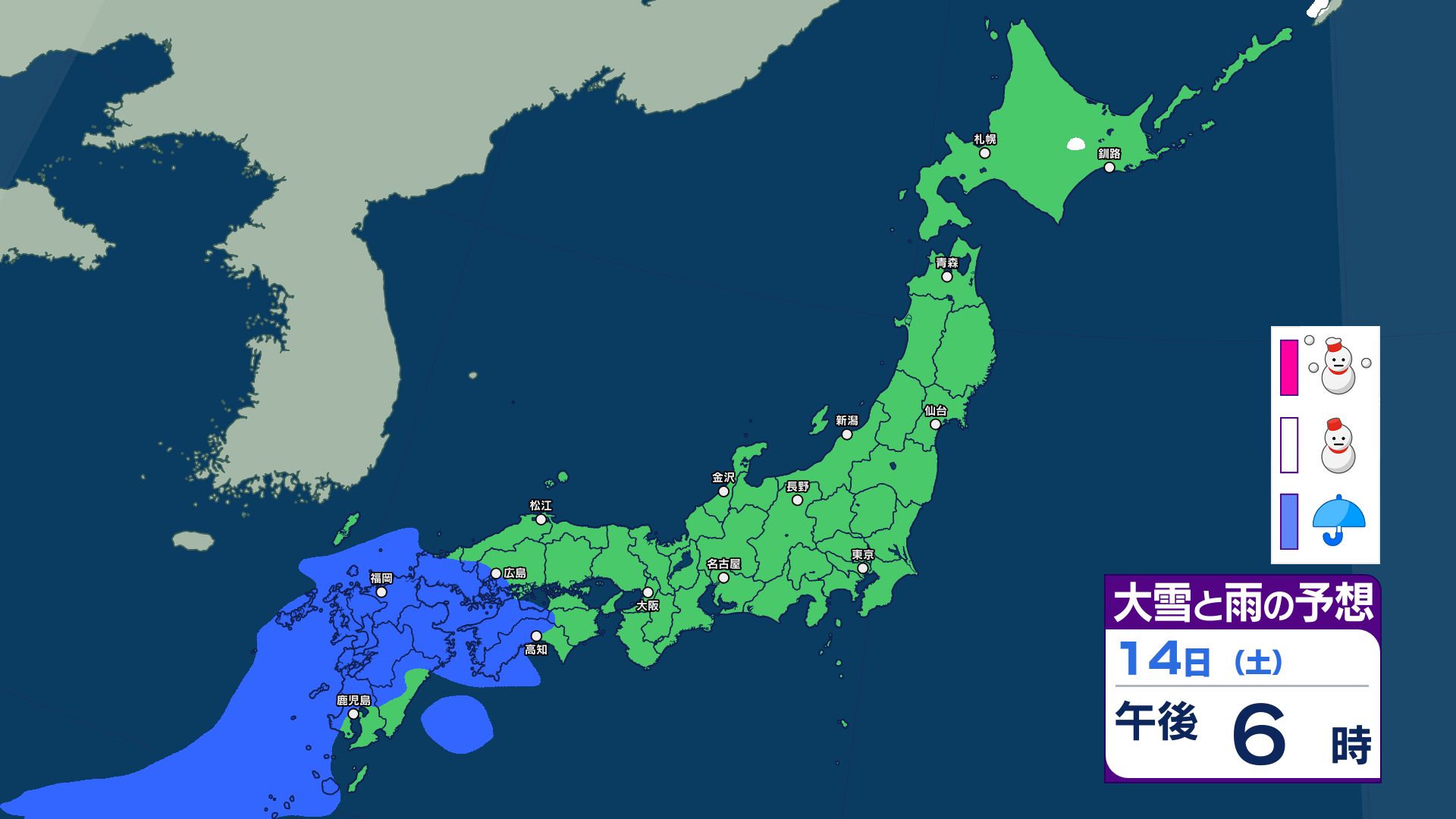 週末14日は九州で雨予想 15日は気温上昇で北日本~西日本は雪崩に注意…上空1500m付近で平年より10℃前後高く【18日まで 雪と雨のシミュレーション掲載】 2026年2月13日(金) 15:45 国内 【18日まで 雪と雨のシミュレーション掲載】