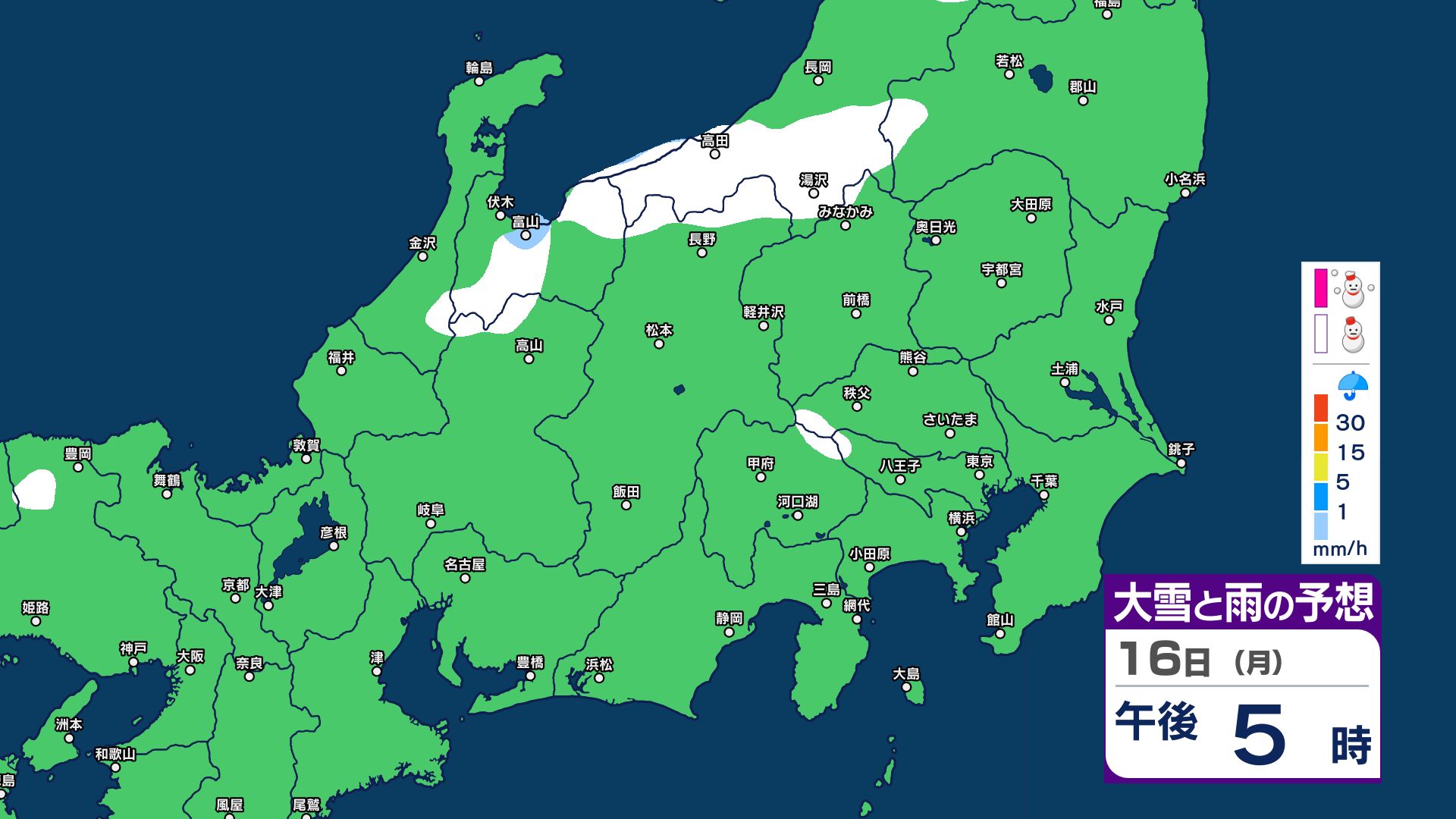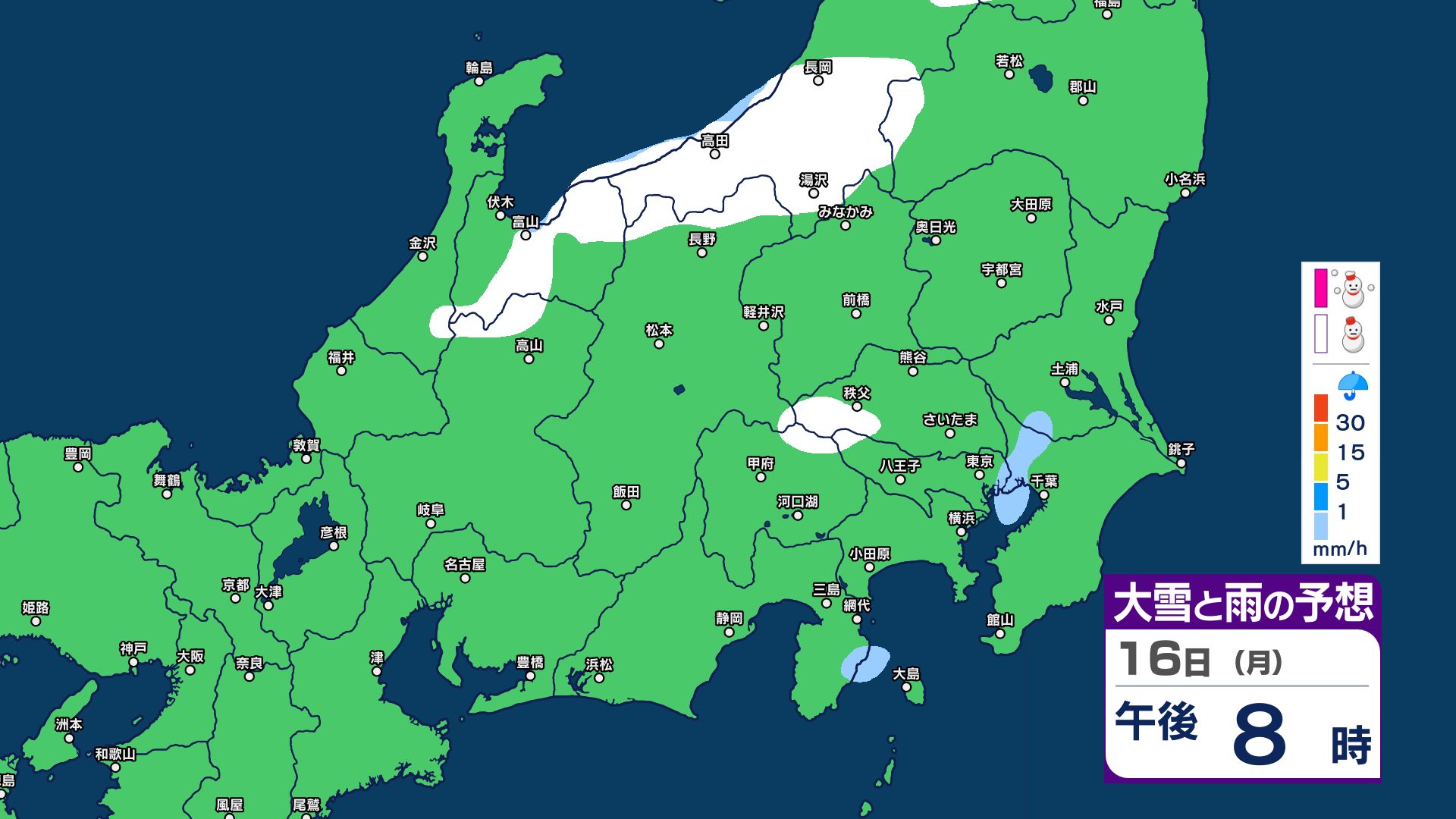 関東南部は16日夜から雨か雪の降るところも…週明けの関東甲信地方の天気は?【17日まで 雪と雨のシミュレーション掲載】