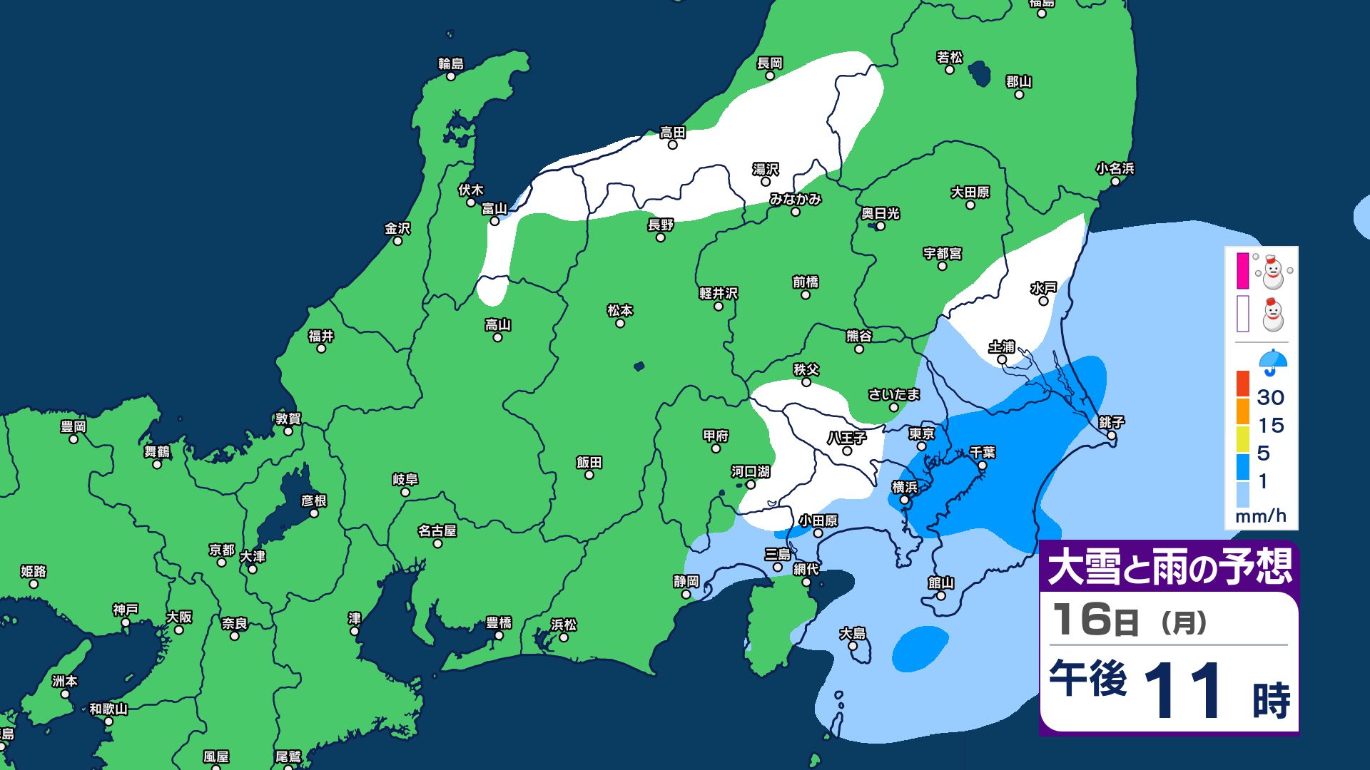 東京・神奈川で雪の可能性【1時間ごとの雪のシミュレーション】平地でも積雪か…16日夕方~17日明け方にかけて 関東南部に気圧の谷 2026年2月16日(月) 09:45 国内 【19日まで 雪と雨のシミュレーション掲載】