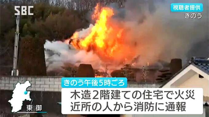 16日午後5時ごろ、東御市祢津の木造2階建ての住宅から火が出ていると近所の人から消防に通報がありました。