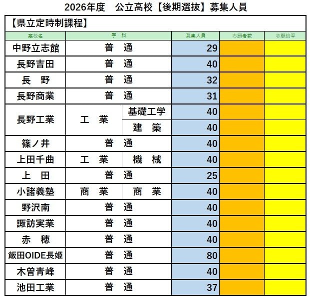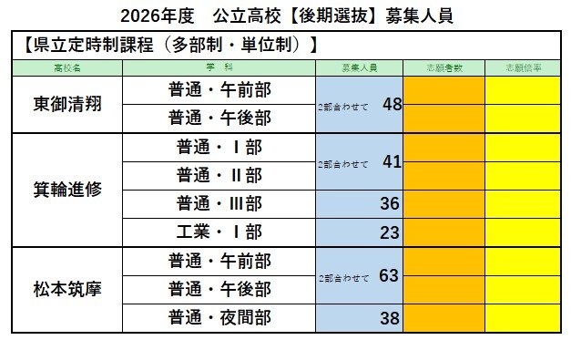 【長野県・高校入試】公立高校の後期選抜 募集人員【全校一覧掲載】3月10日(火)実施・3月19日(木)合格発表 2026年2月18日(水) 17:12 国内 県立定時制課程 県立定時制課程(多部制・単位制)