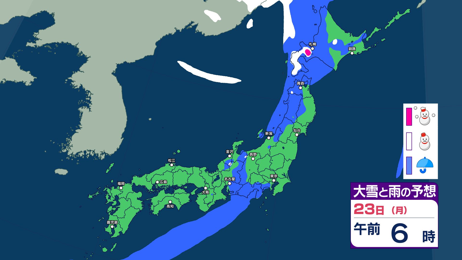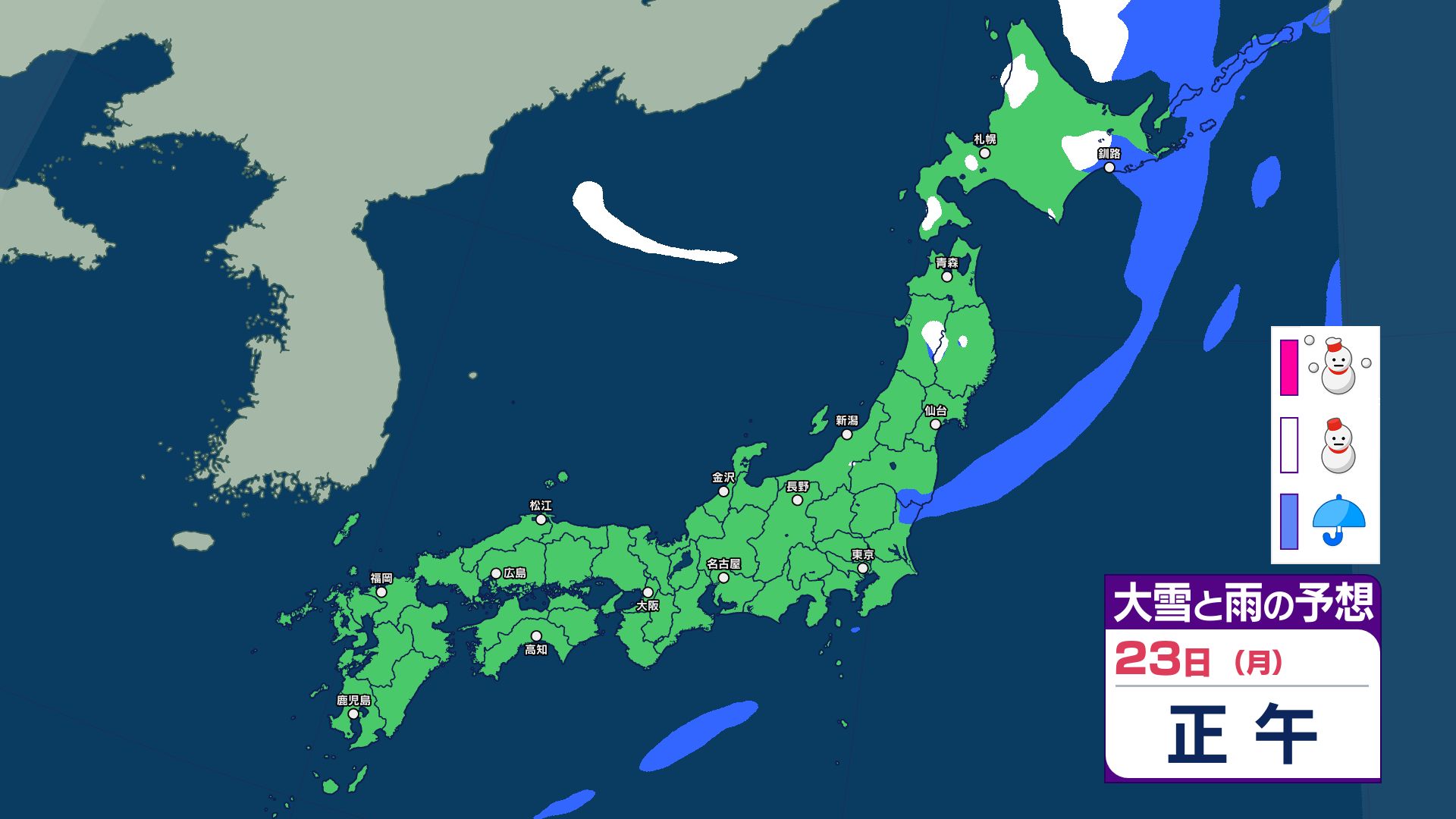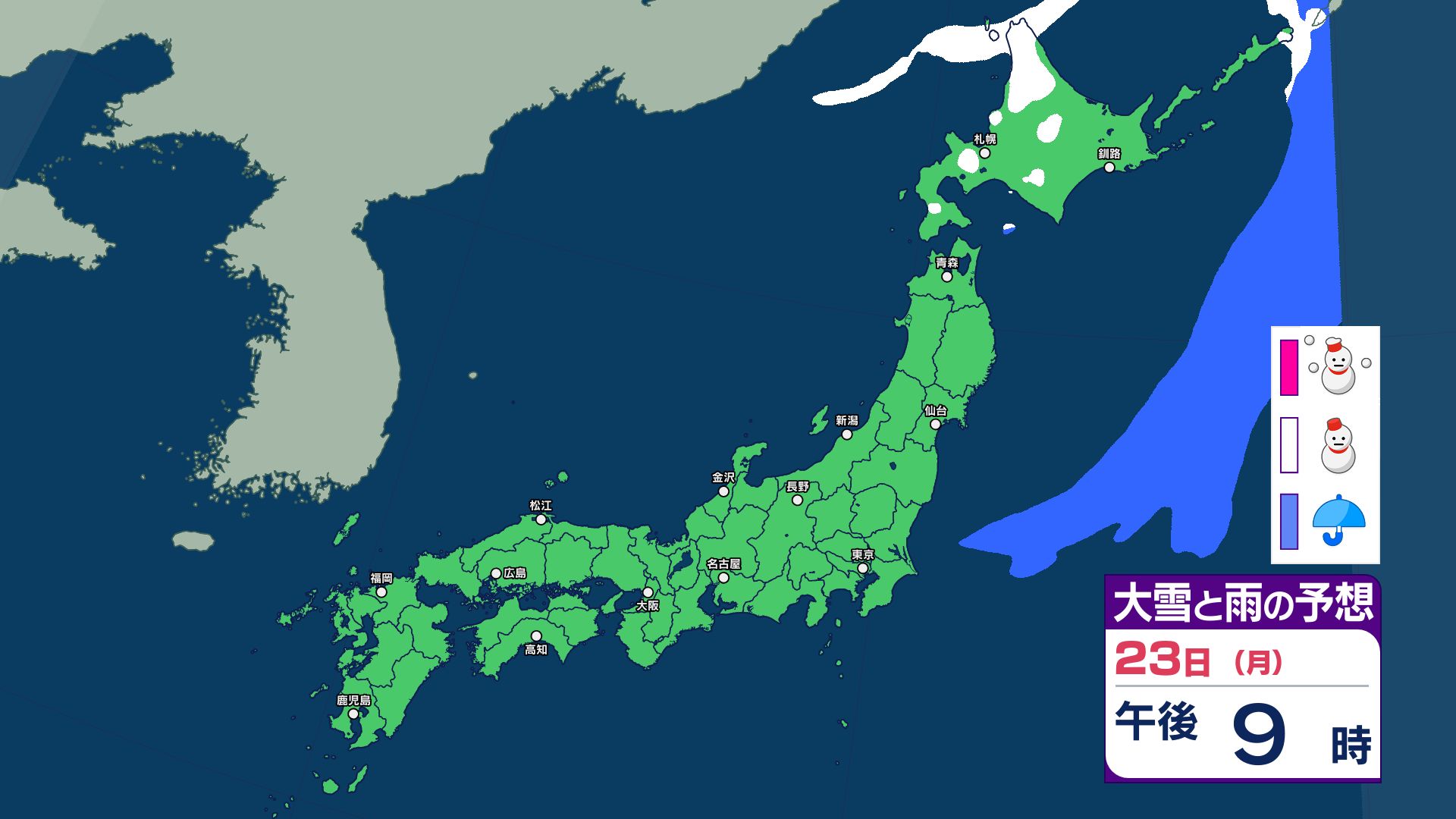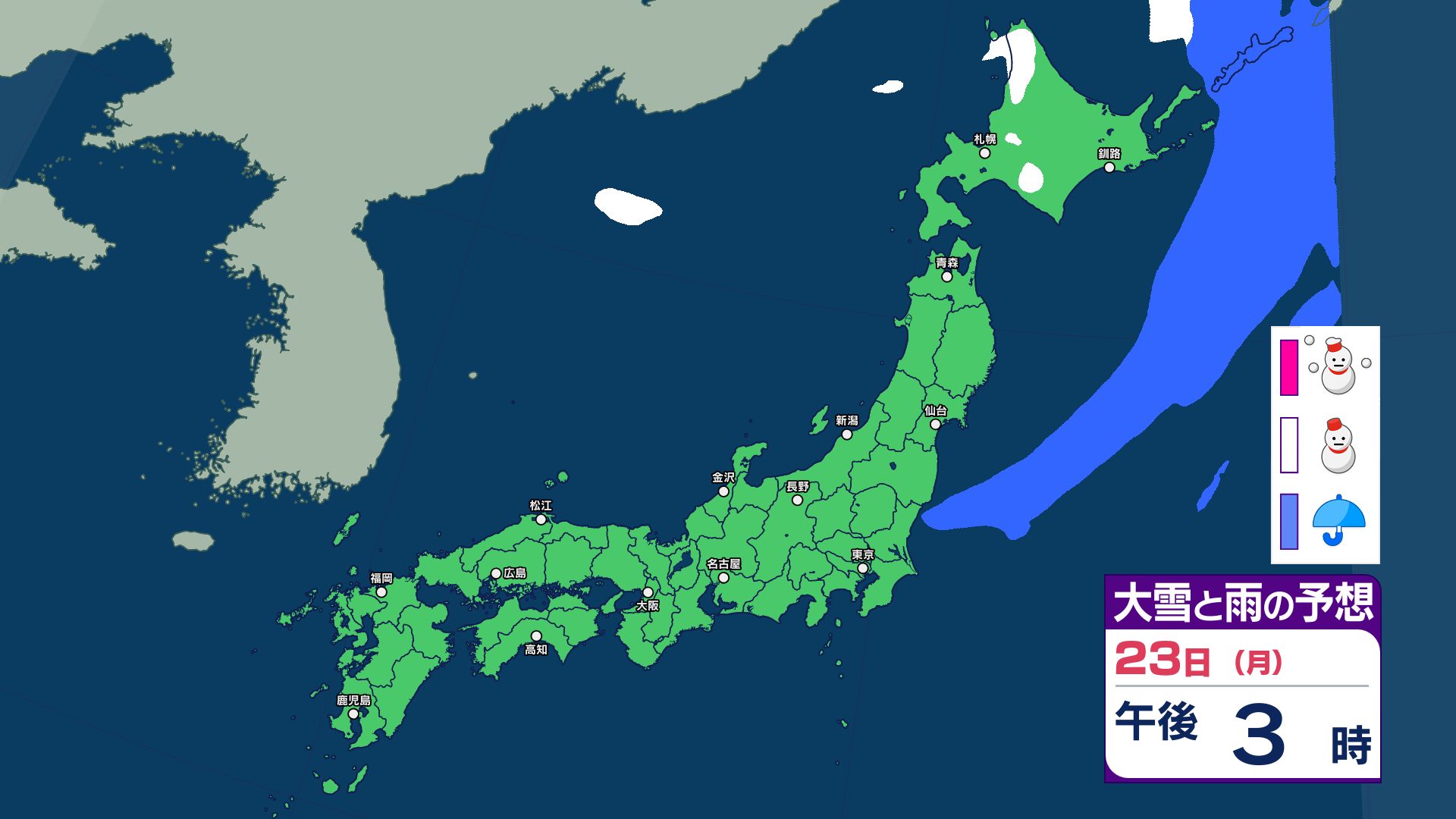 3連休と週明けの天気は?寒冷前線が通過する22日~23日は西日本~北日本で急な強い雨などに注意…25日は気圧の谷が通過で雨か【雨と雪のシミュレーション】