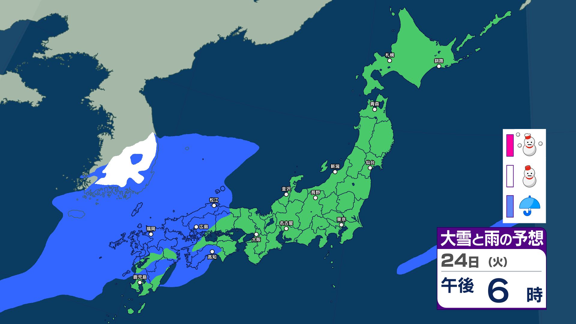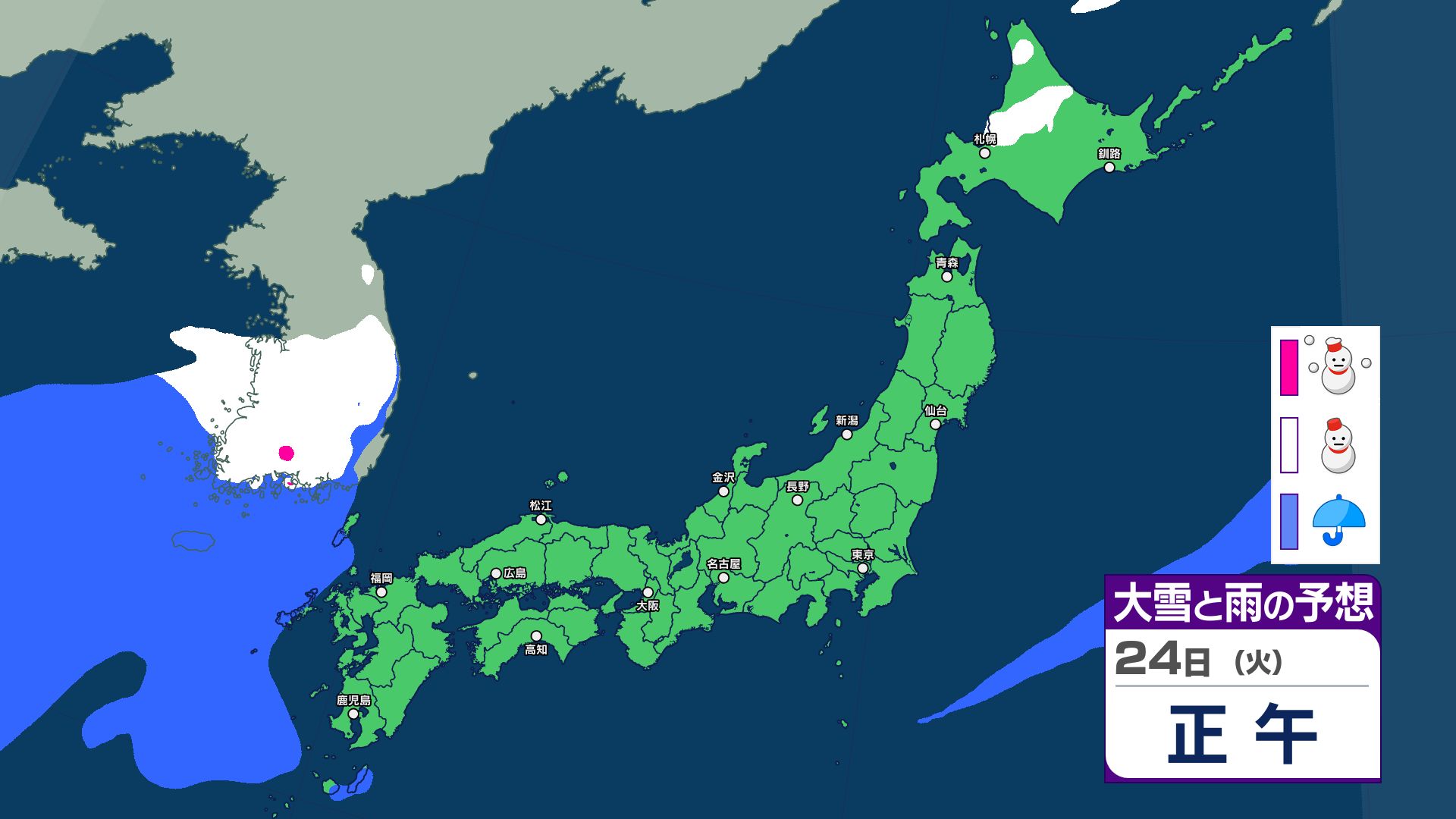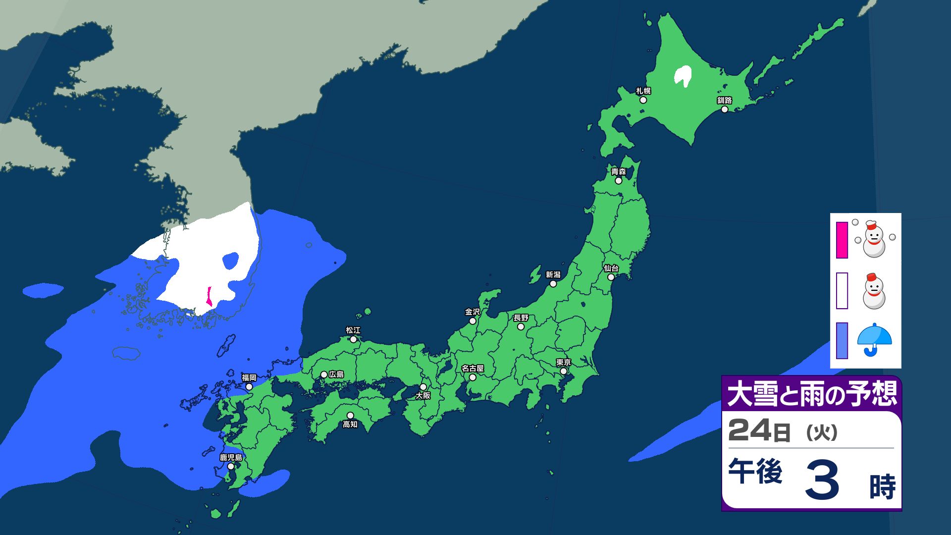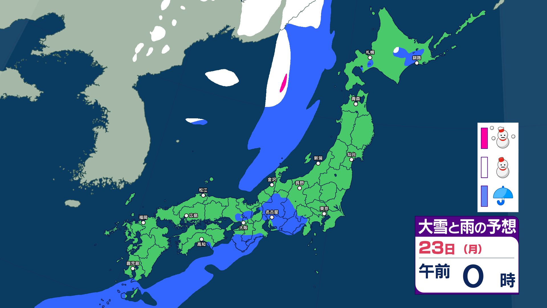 3連休と週明けの天気は?寒冷前線が通過する22日~23日は西日本~北日本で急な強い雨などに注意…25日は気圧の谷が通過で雨か【雨と雪のシミュレーション】