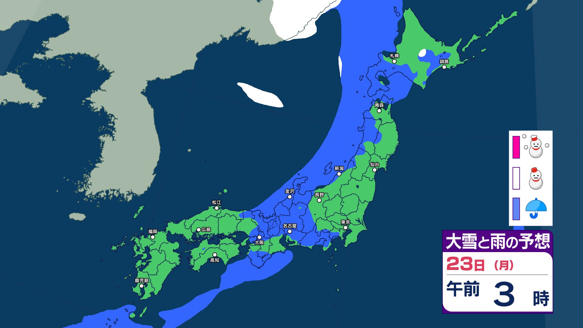 三連休最終日の23日にかけて西日本~東日本で急な強い雨などに注意…週明け24日は大雨のところも【雨と雪のシミュレーション】 2026年2月22日(日) 09:38 国内 【26日まで 雨と雪のシミュレーション掲載】