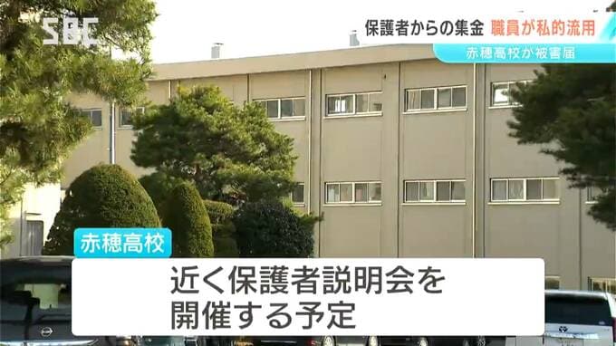 高校によりますと、赤穂高校の職員が教育のために保護者から集めた金の一部を私的に流用していたことが学校の調査で分かりました。
