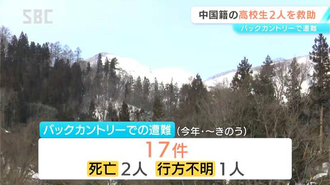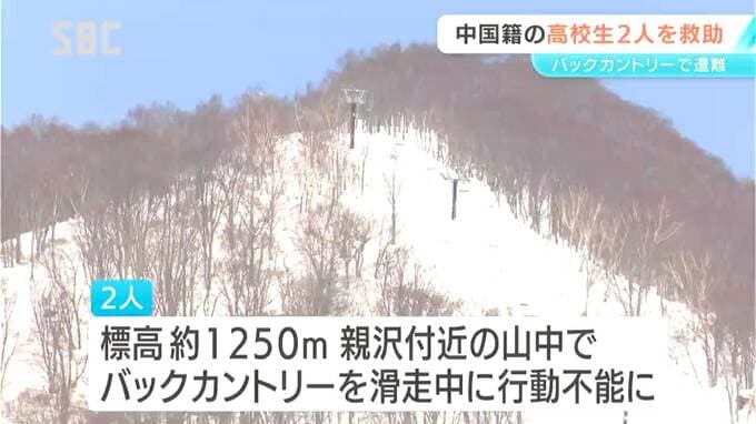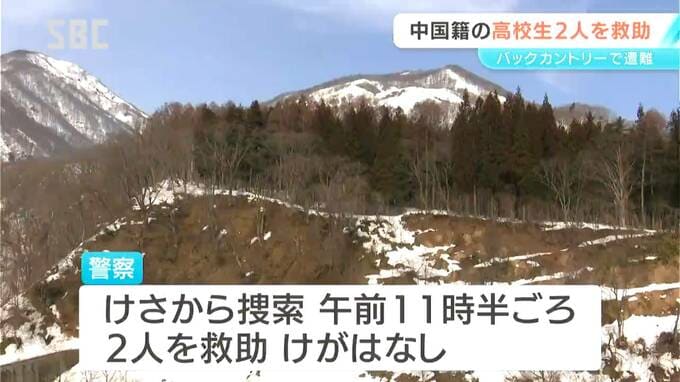 小谷村の山中で、バックカントリーを滑走中に行動不能になっていた中国籍の高校生2人が無事救助されました。