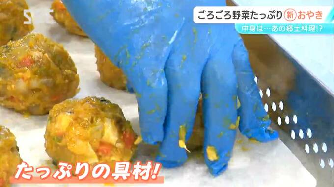 「おぶっこおやき」を開発 石川大哲さん:「おぶっこっていうと、やっぱり野菜がごろごろしたっていうイメージを持っているので、おやきなので大きさに限度はあるんですけど、それでもごろっとした野菜が入っていれば、おぶっこらしさが出るのかなと思って」
