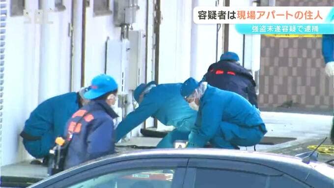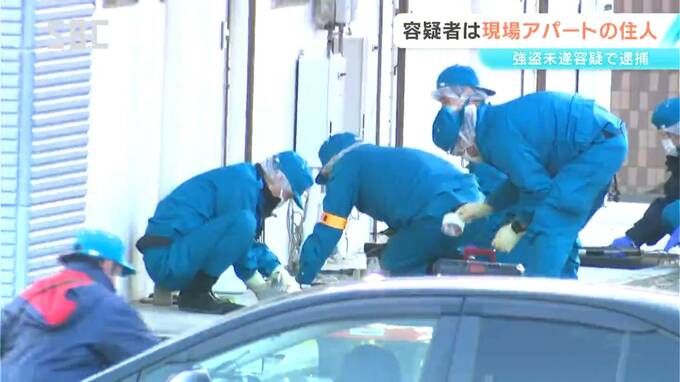 現場は容疑者自身も住むアパートでした。警察によりますと、17日の午後2時半ごろ、住人の女性と、居合わせた親族の女性に刃物のようなものを向けて脅し、現金を奪い取ろうとした疑いが持たれています。